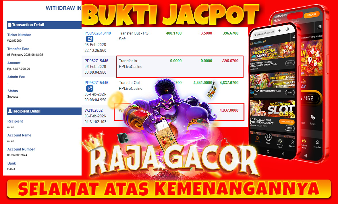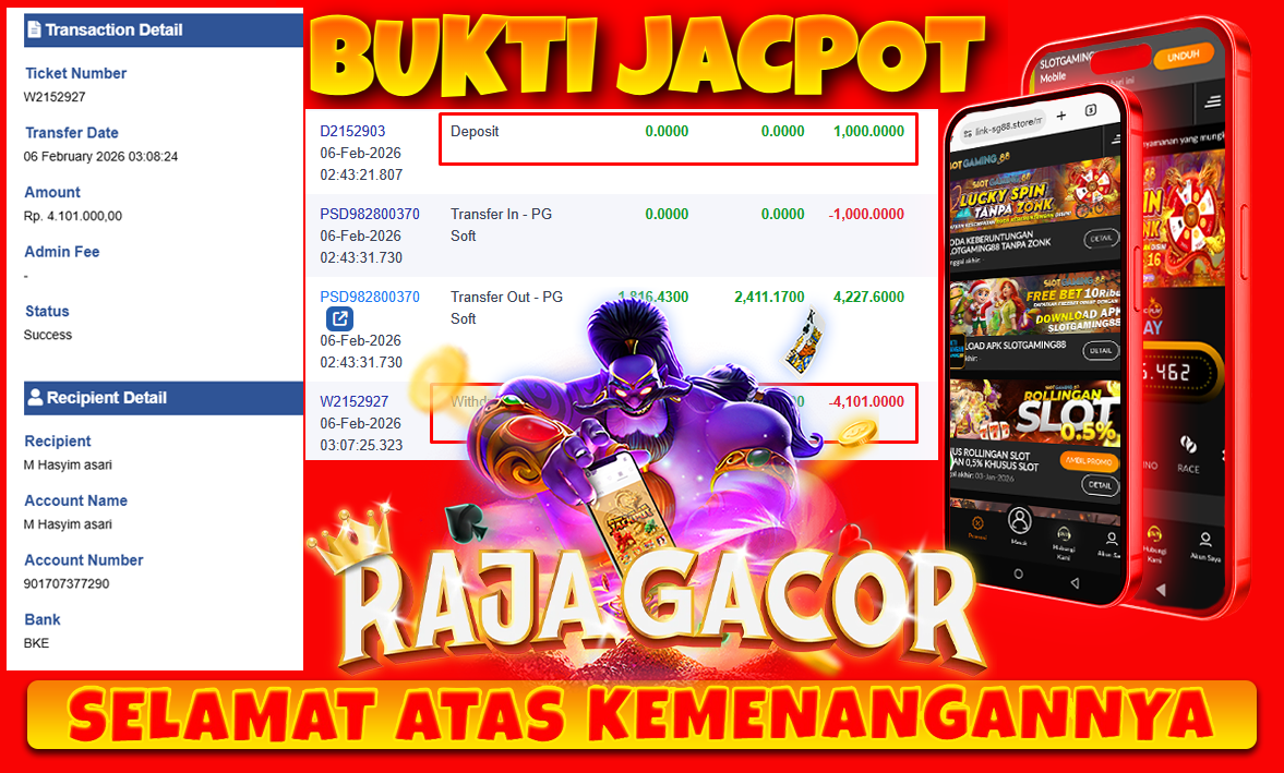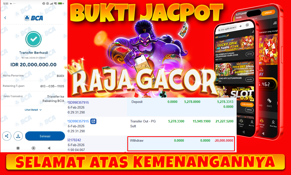 "Tanggal 06-02-2026 Selamat kepada member kami ID bd6*** telah memenangkan nominal 21 juta!"