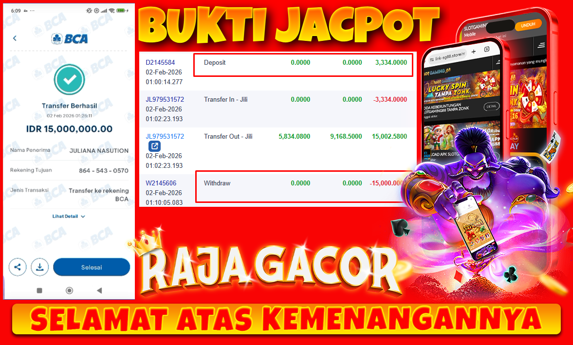 "Tanggal 01-02-2026 Selamat kepada member kami ID anjingsa*** telah memenangkan nominal 15 juta!"