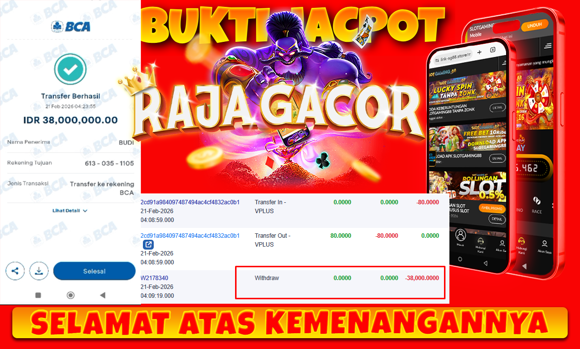 "Tanggal 20-02-2026 Selamat kepada member kami ID budi*** telah memenangkan nominal 38 juta!"