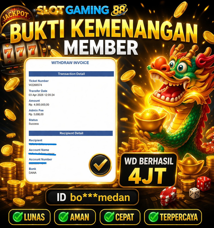 "Tanggal 04-04-2026 Selamat kepada member kami ID graxy*** telah memenangkan nominal 3.8 juta!"