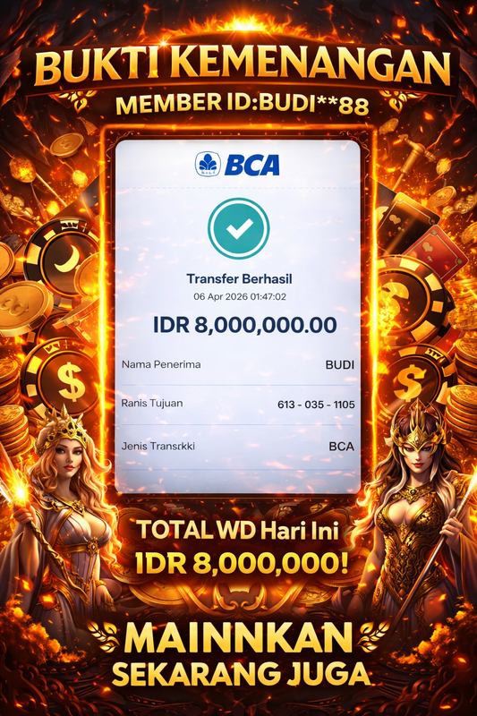 "Tanggal 05-04-2026 Selamat kepada member kami ID budi*** telah memenangkan nominal 8 juta!"
