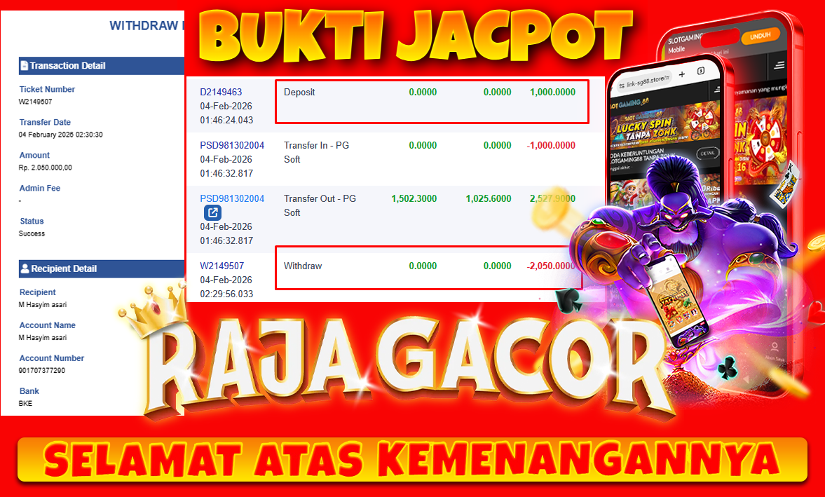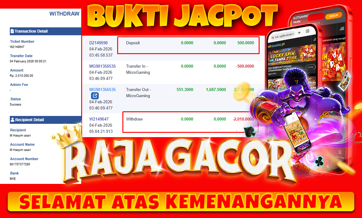 "Tanggal 04-02-2026 Selamat kepada member kami ID budih*** telah memenangkan nominal 31.3 juta!"
