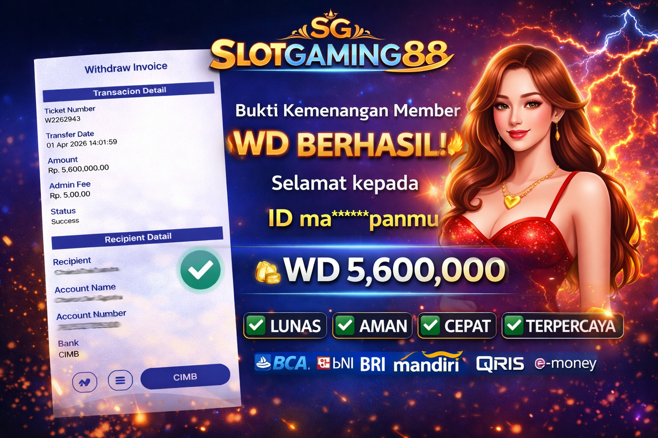 "Tanggal 01-04-2026 Selamat kepada member kami ID masa*** telah memenangkan nominal 5.6 juta!"