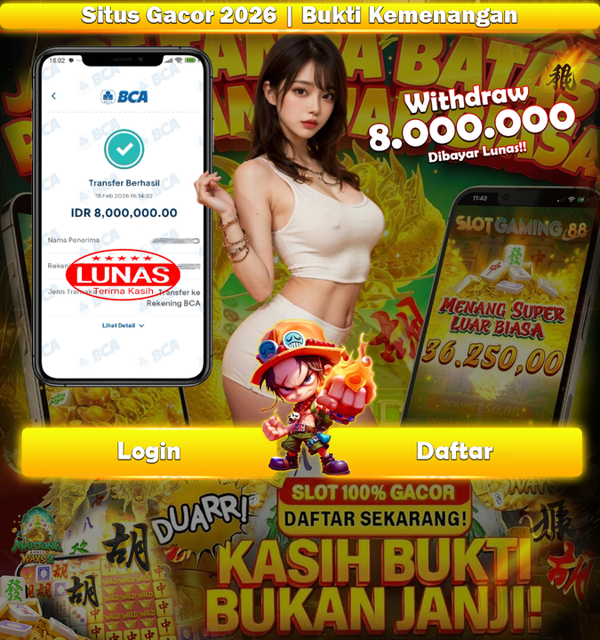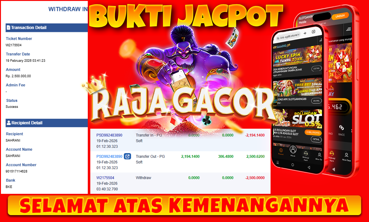 "Tanggal 01-02-2026 Selamat kepada member kami ID anguan*** telah memenangkan nominal 19 juta!"