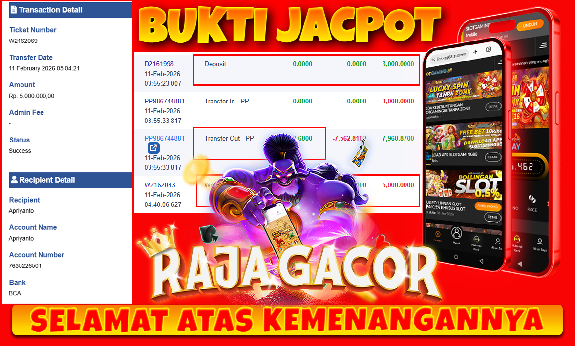 "Tanggal 11-02-2026 Selamat kepada member kami ID laci*** telah memenangkan nominal 6 juta!"