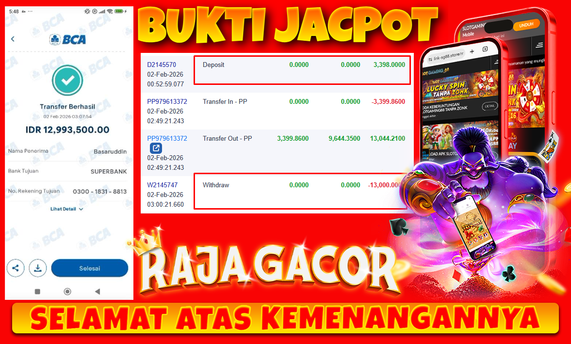 "Tanggal 01-02-2026 Selamat kepada member kami ID zepa*** telah memenangkan nominal 13 juta!"
