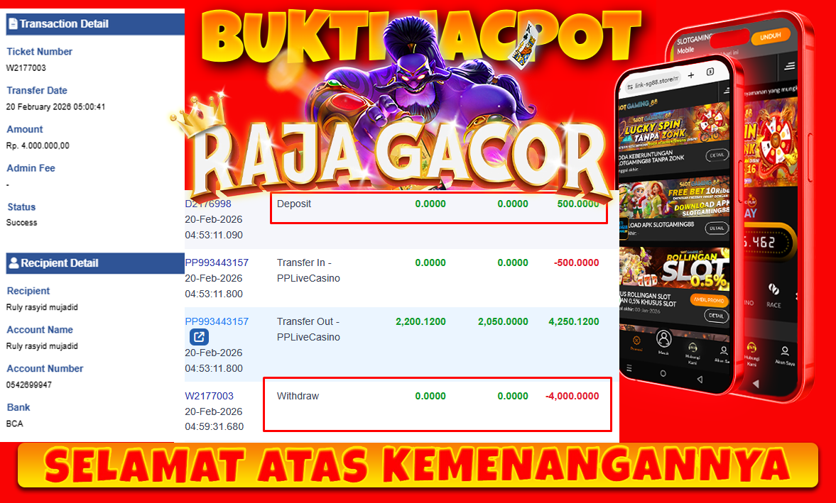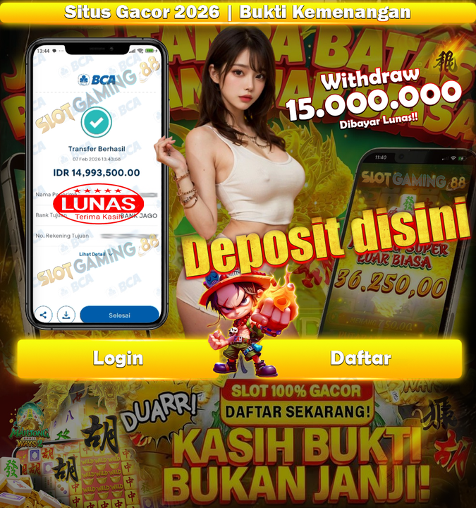"Tanggal 20-02-2026 Selamat kepada member kami ID rulya*** telah memenangkan nominal 15.4 juta!"