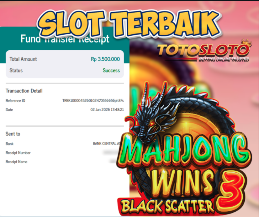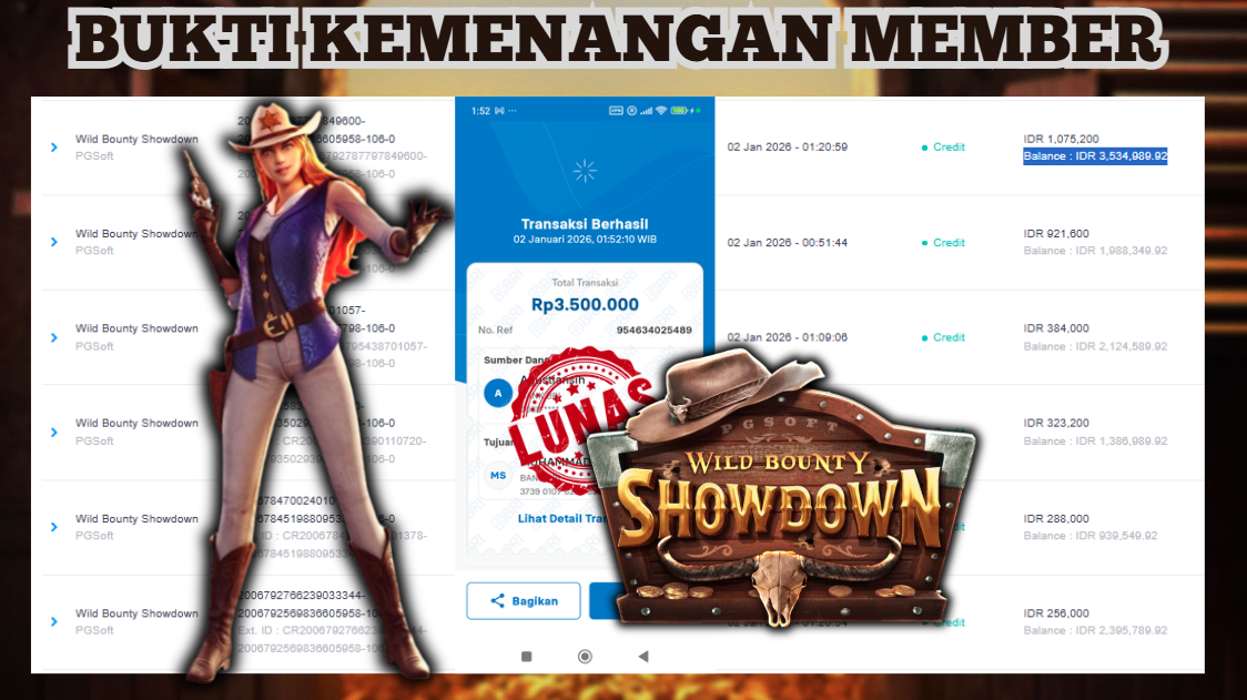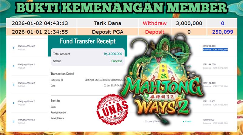 "Tanggal 02-01-2026 Selamat kepada member kami ID TARI*** memenangkan nominal 3 juta!"