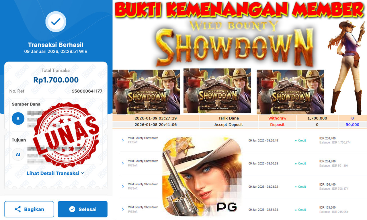 "Tanggal 14-01-2026 Selamat kepada member kami NDA*** memenangkan nominal 1.7 juta!"