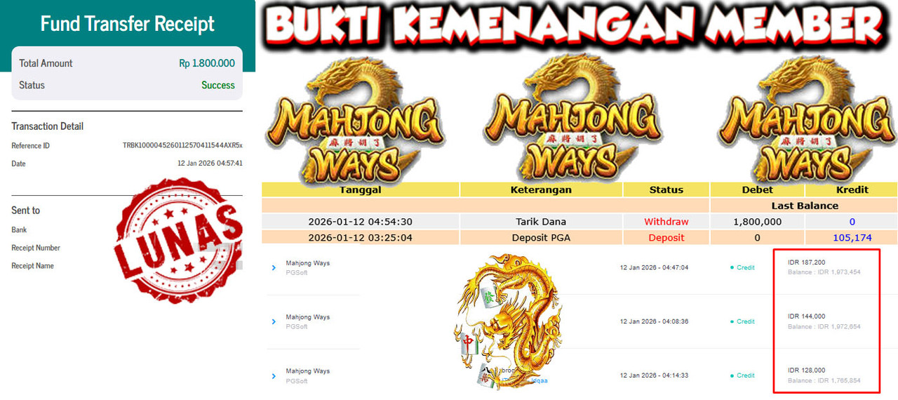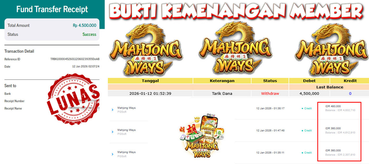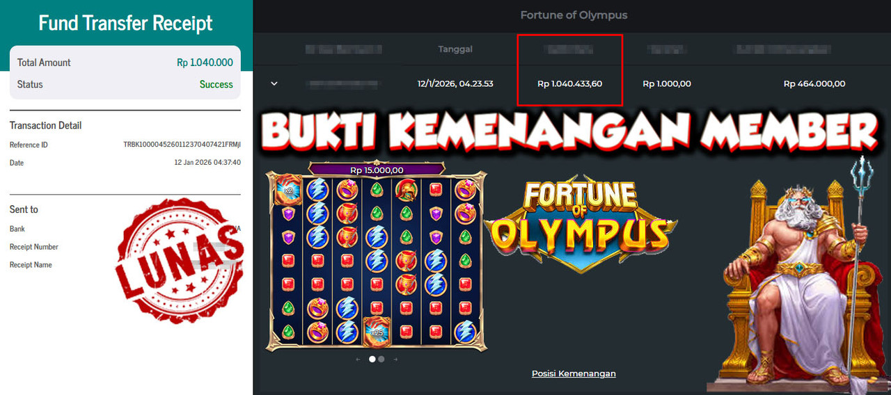 "Tanggal 15-01-2026 Selamat kepada member kami DEP*** memenangkan nominal 1.2 juta!"