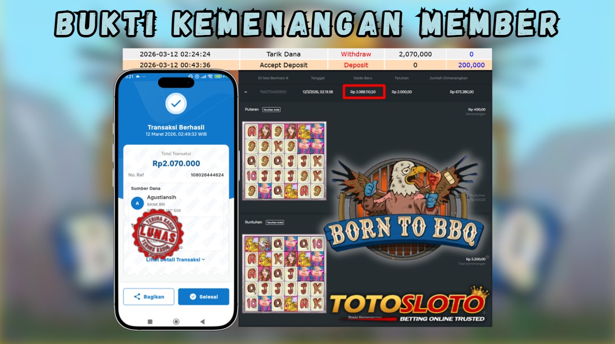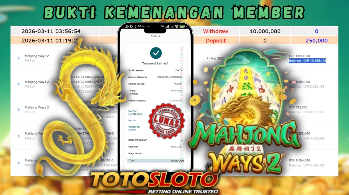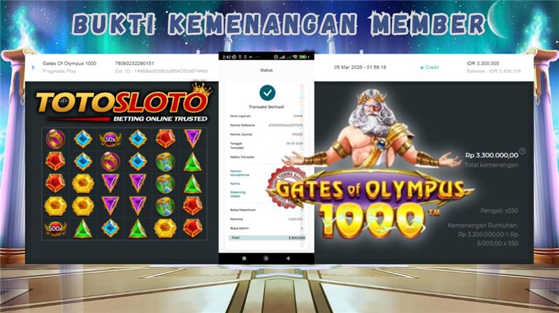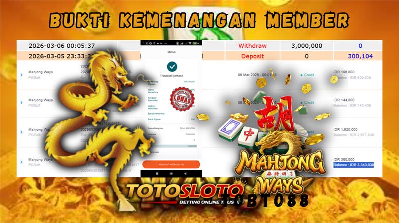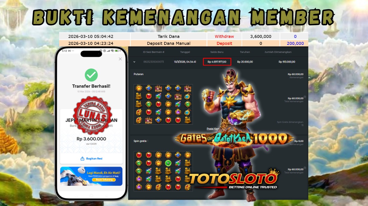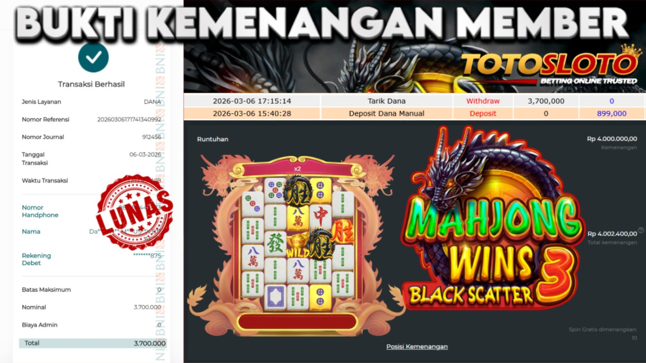"Tanggal 06-03-2026 Selamat kepada member kami toto*** memenangkan nominal 3.7 juta!"