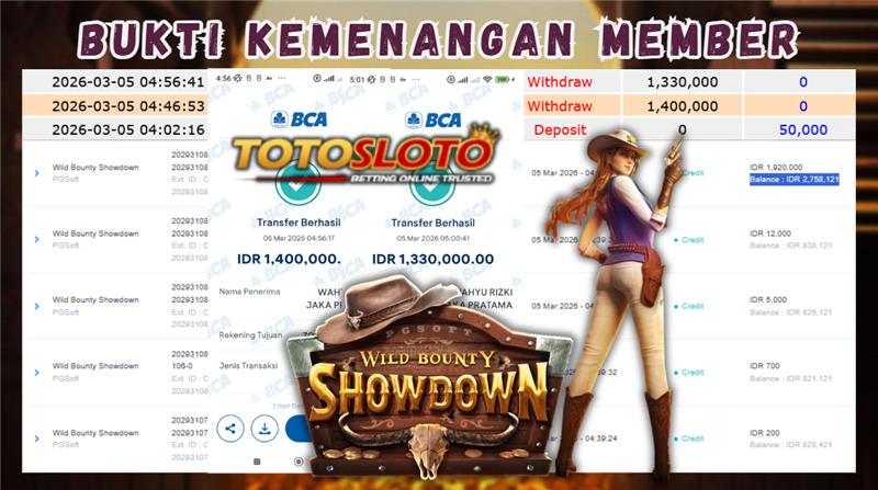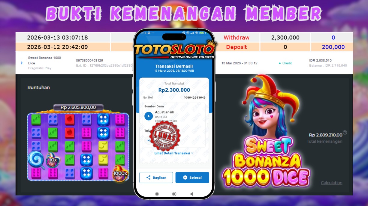 "Tanggal 13-03-2026 Selamat kepada member kami BEB*** memenangkan nominal 2.3 juta!"