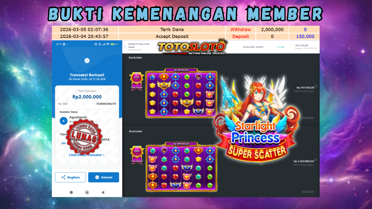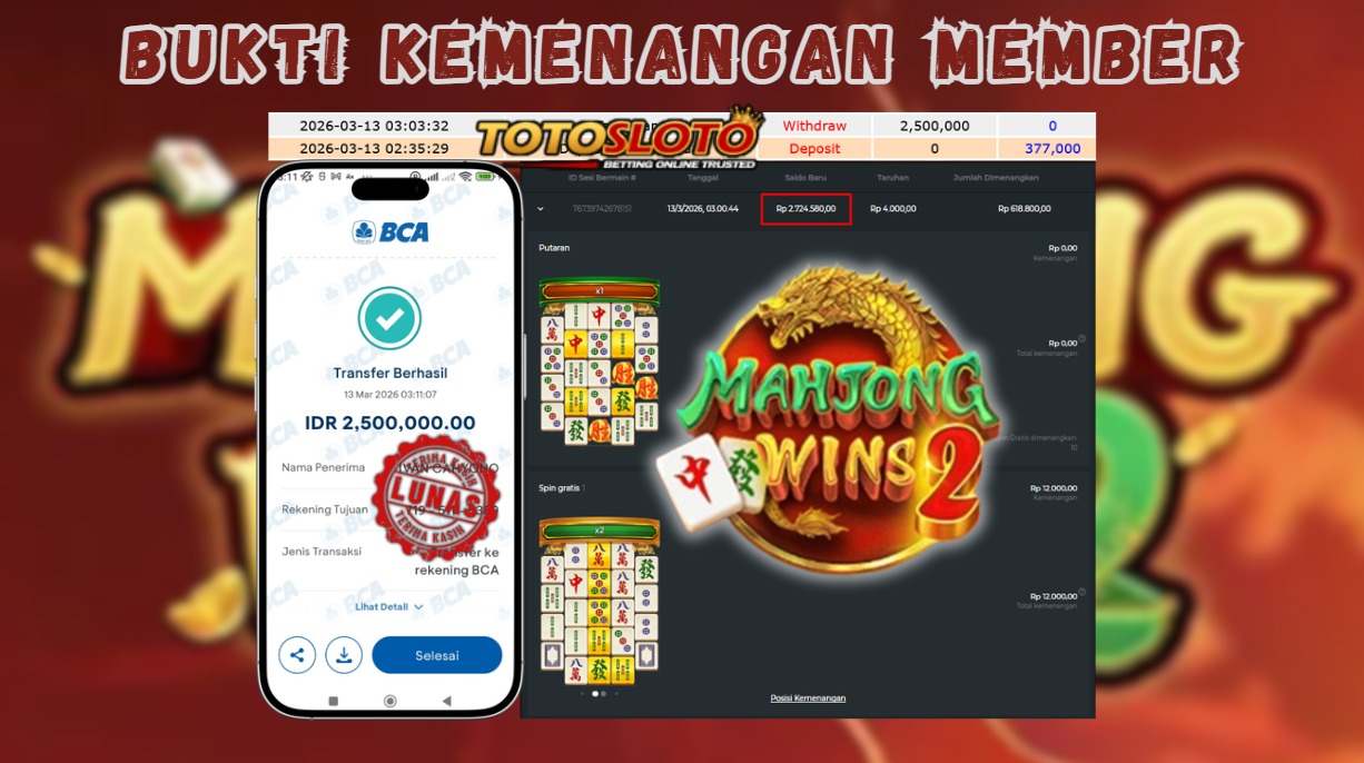 "Tanggal 12-03-2026 Selamat kepada member kami KIT*** memenangkan nominal 2 juta!"