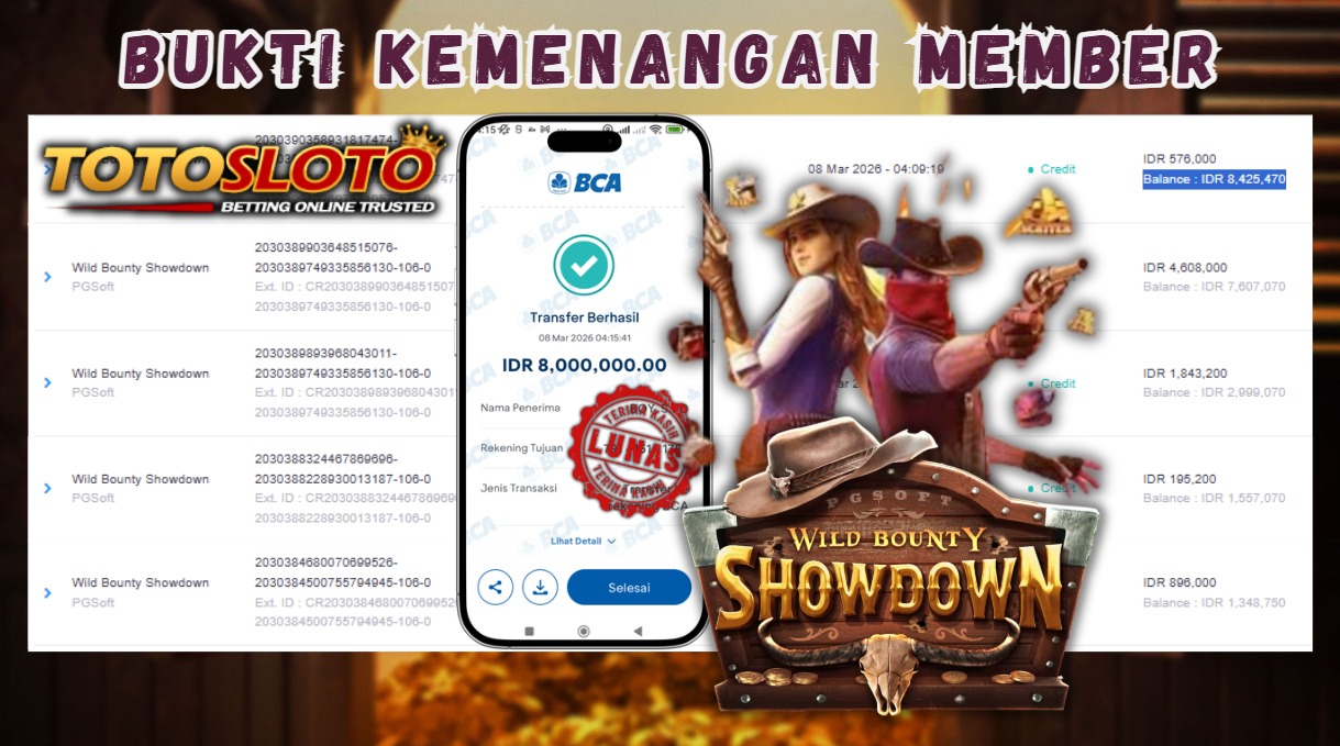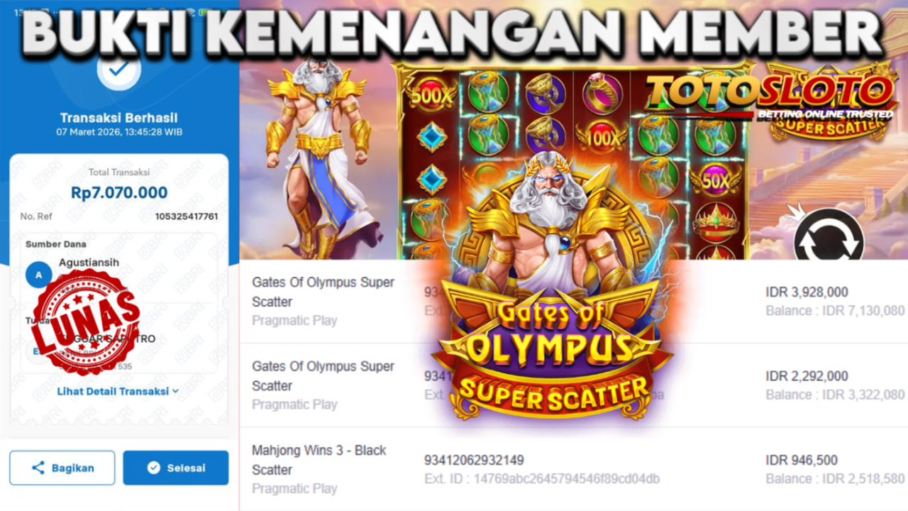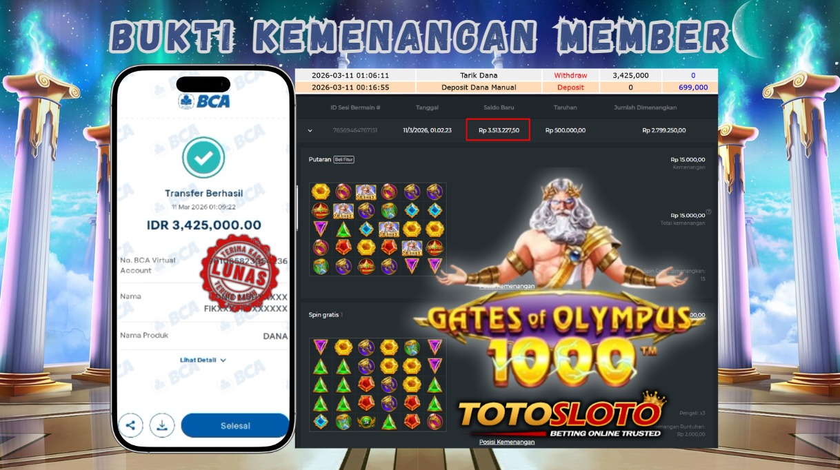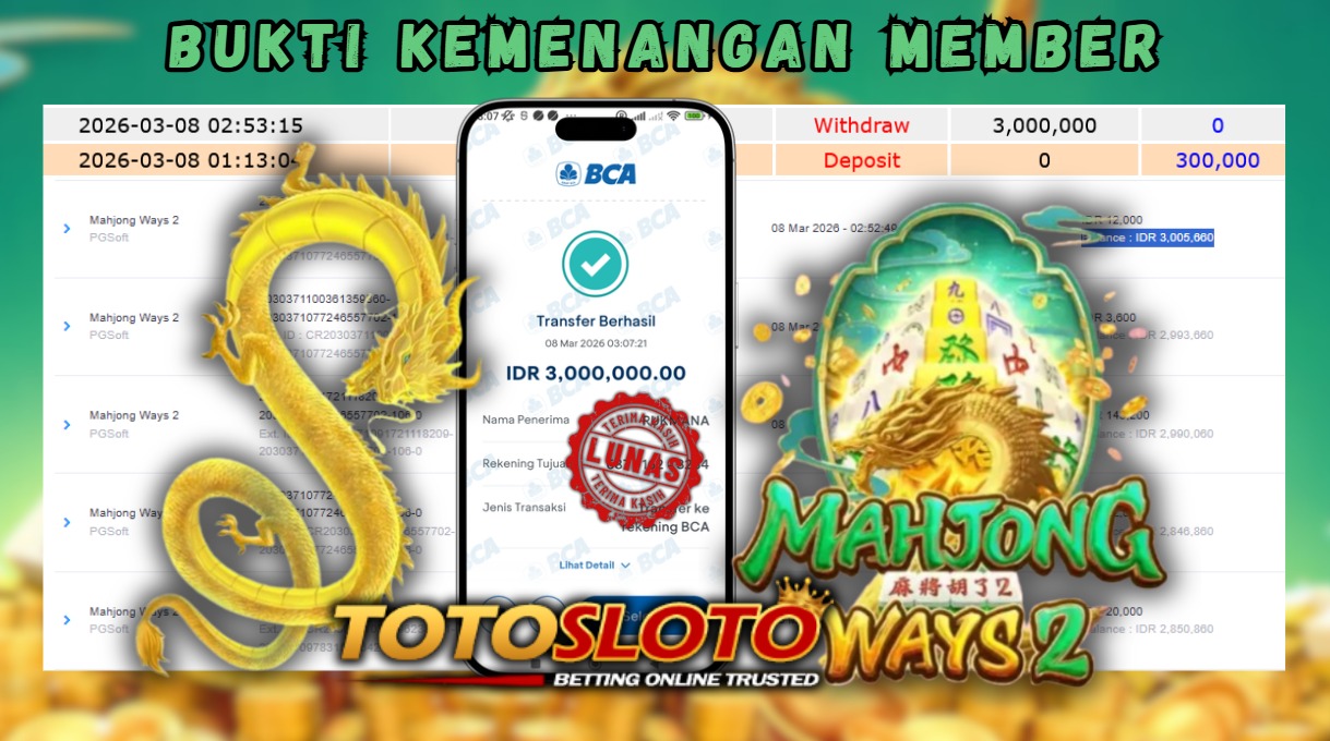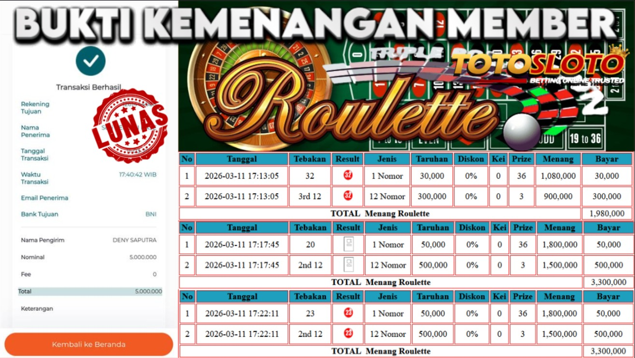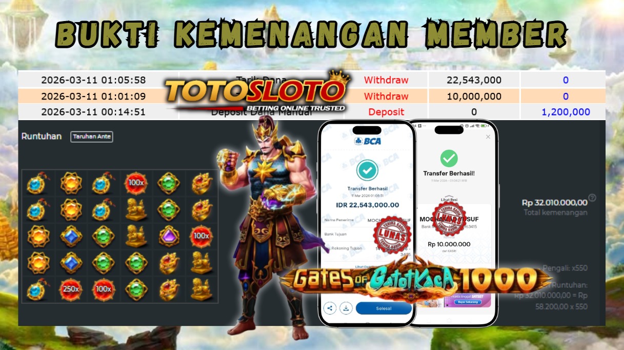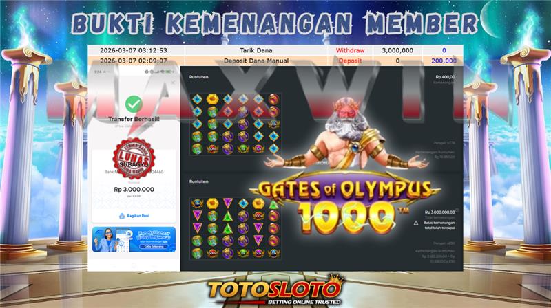 "Tanggal 01-03-2026 Selamat kepada member kami allo*** memenangkan nominal 7 juta!"