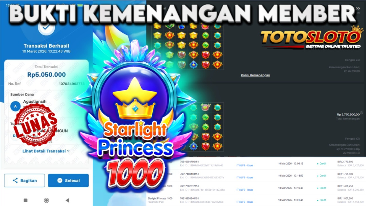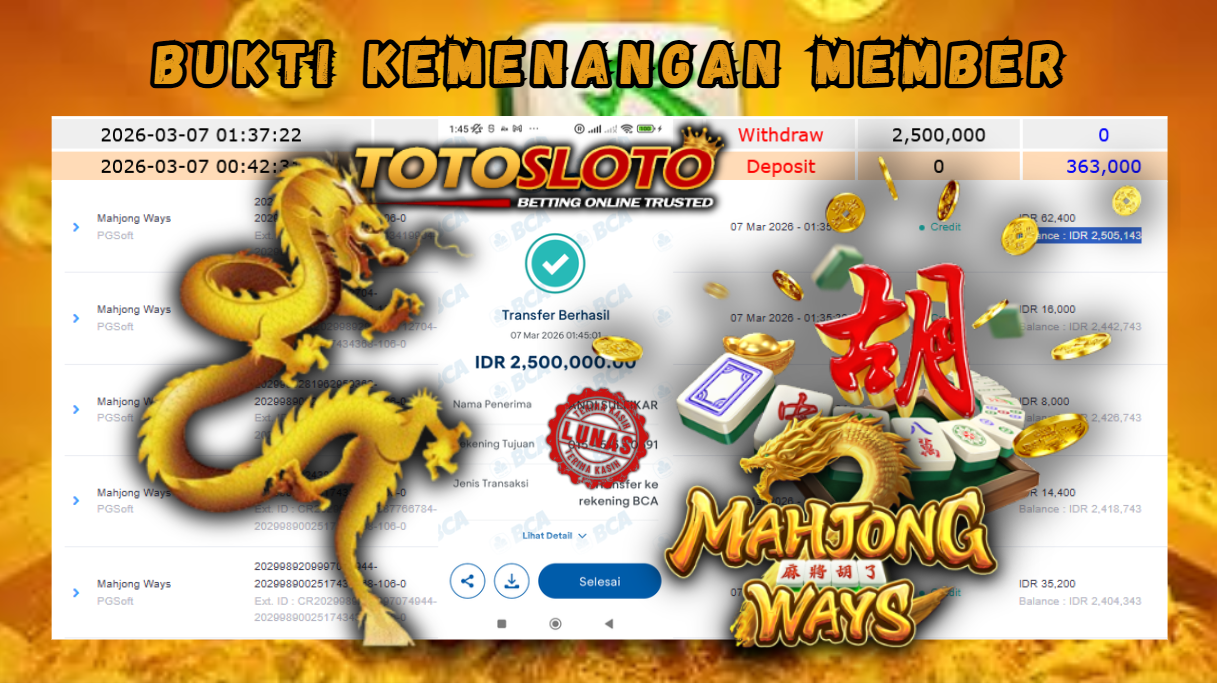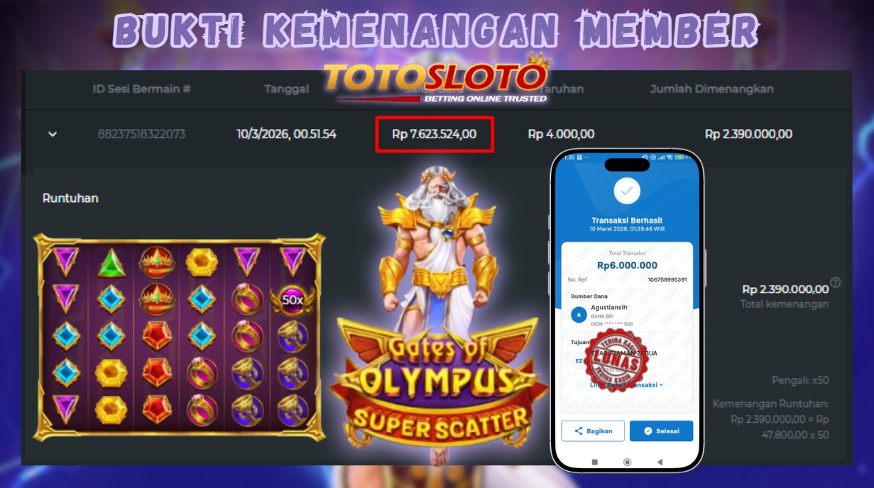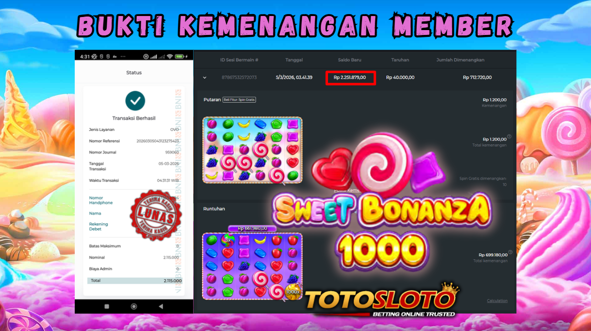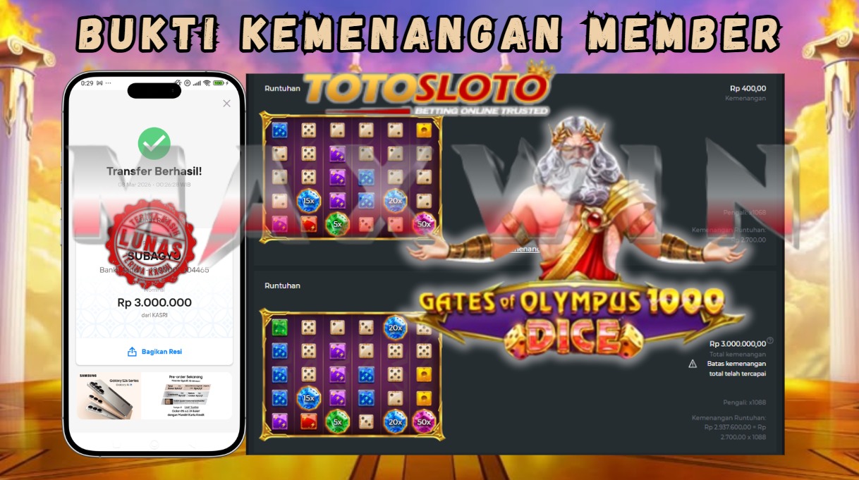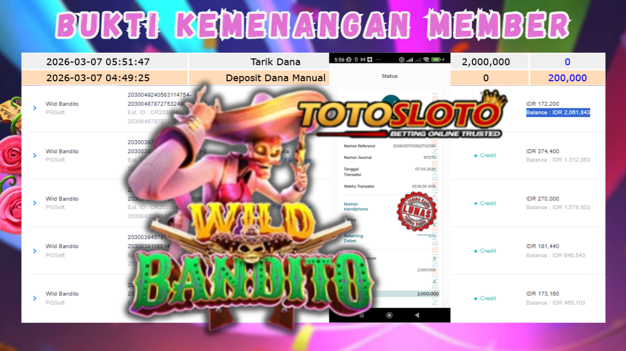 "Tanggal 01-03-2026 Selamat kepada member kami allo*** memenangkan nominal 7 juta!"