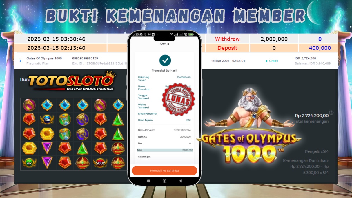 "Tanggal 15-03-2026 Selamat kepada member kami ulunk*** memenangkan nominal 3 juta!"