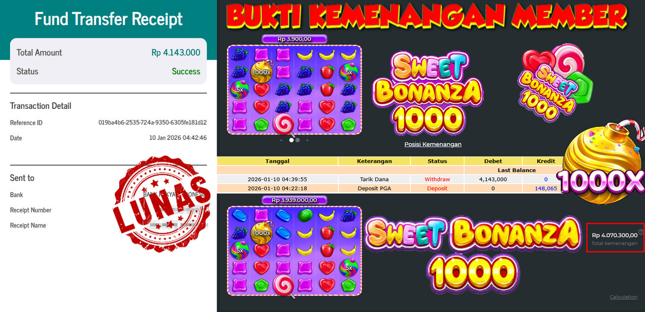 "Tanggal 04-01-2026 Selamat kepada member kami ID AME*** memenangkan nominal 4.2 juta!"