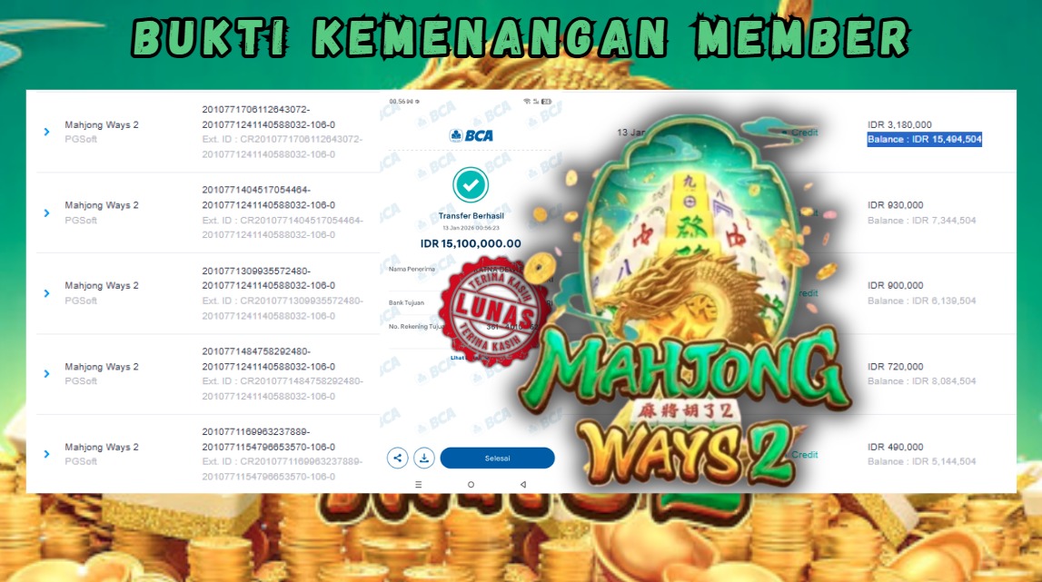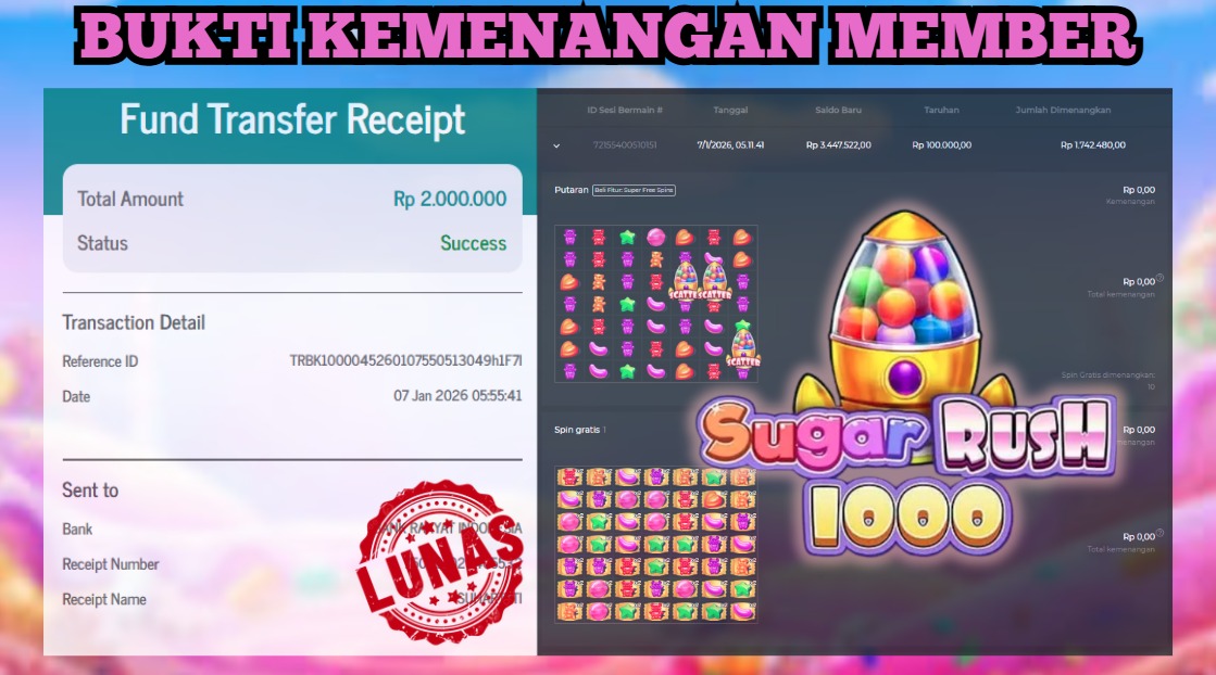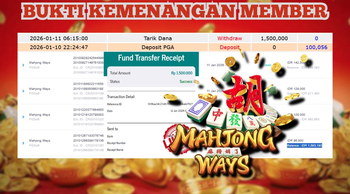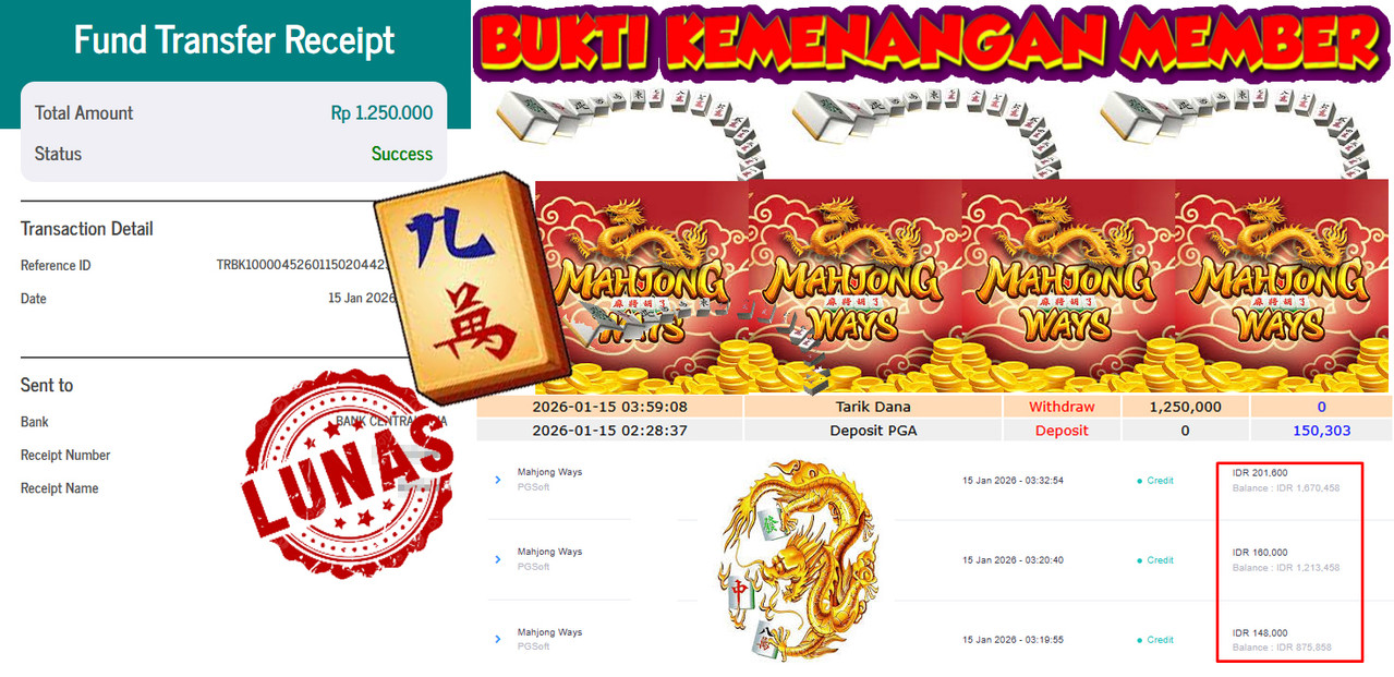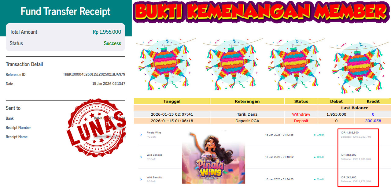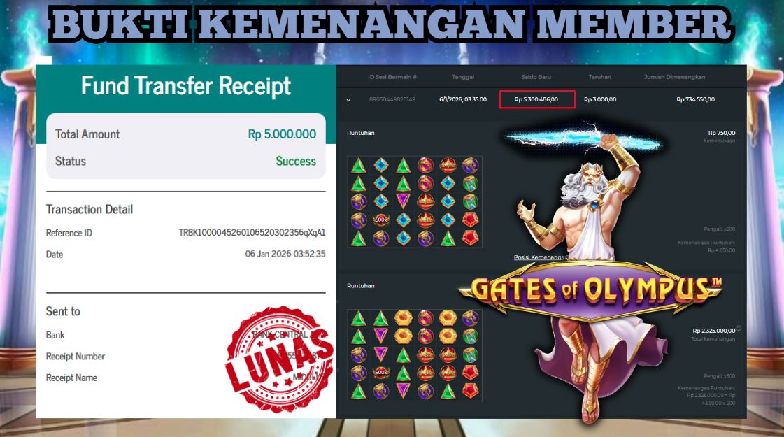 "Tanggal 15-01-2026 Selamat kepada member kami GEND*** memenangkan nominal 3 juta!"