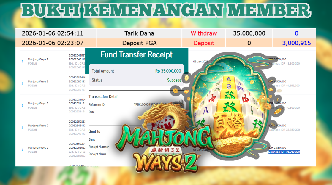 "Tanggal 06-01-2026 Selamat kepada member kami DANG*** memenangkan nominal 35 juta!"