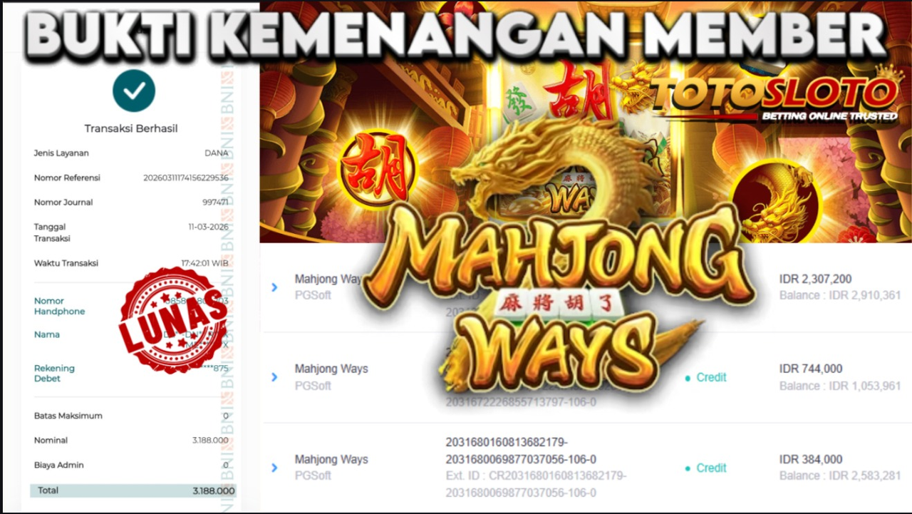 "Tanggal 06-03-2026 Selamat kepada member kami NUK*** memenangkan nominal 3.9 juta!"