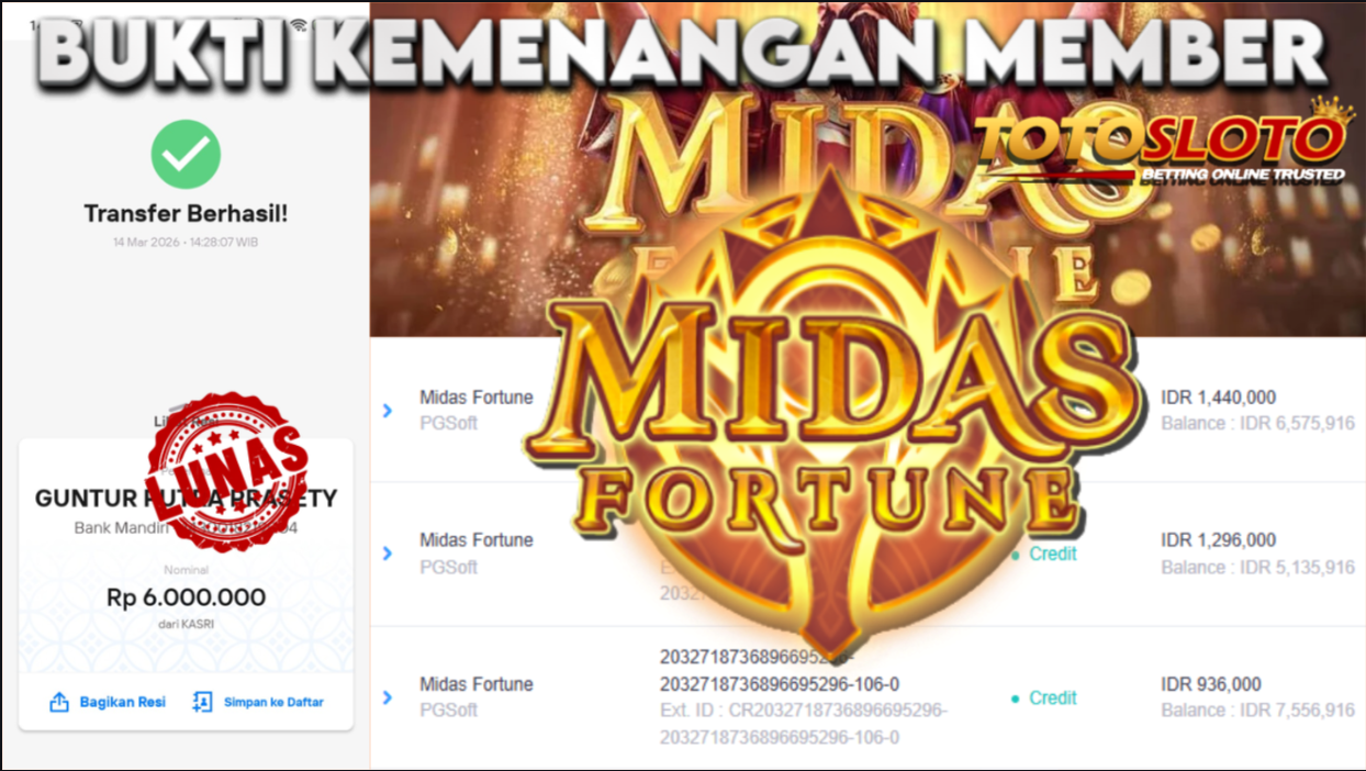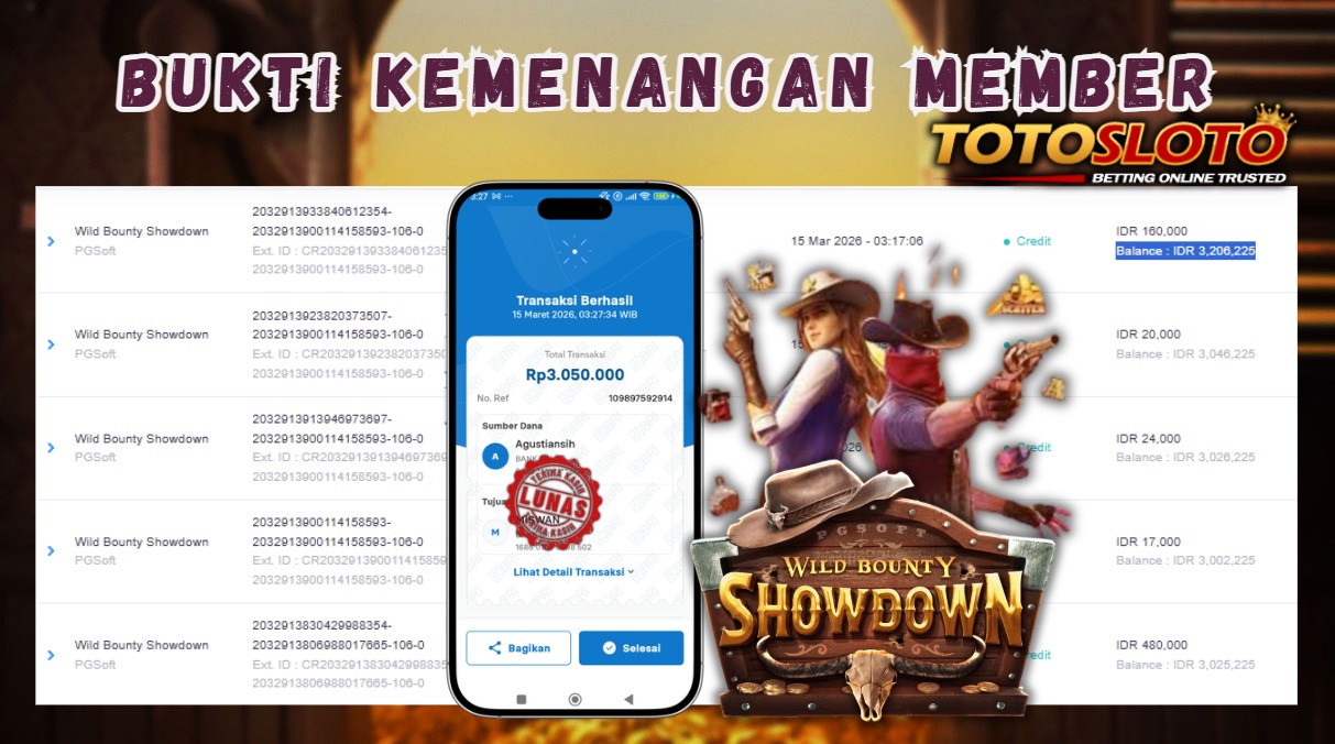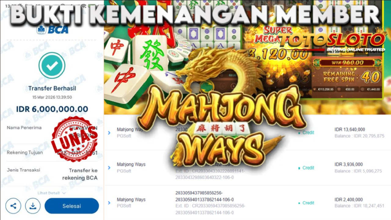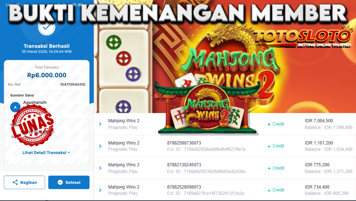 "Tanggal 14-03-2026 Selamat kepada member kami trum*** memenangkan nominal 6 juta!"