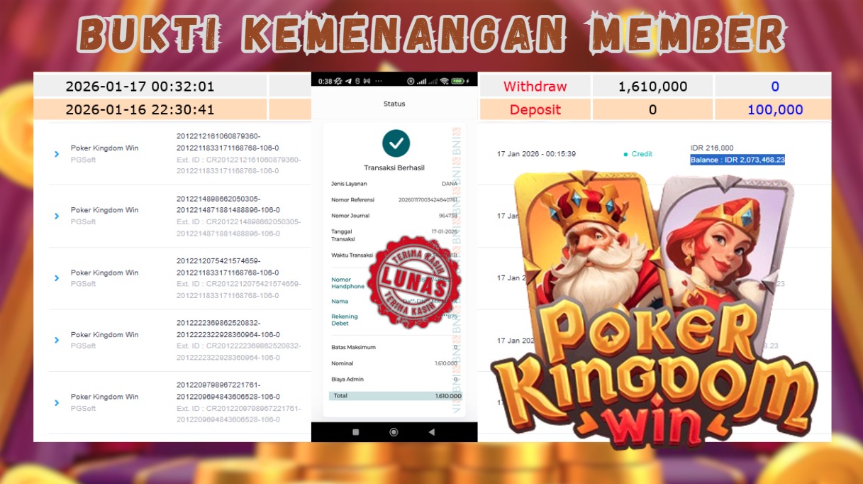 "Tanggal 17-01-2026 Selamat kepada member kami JOJO*** memenangkan nominal 1.6 juta!"