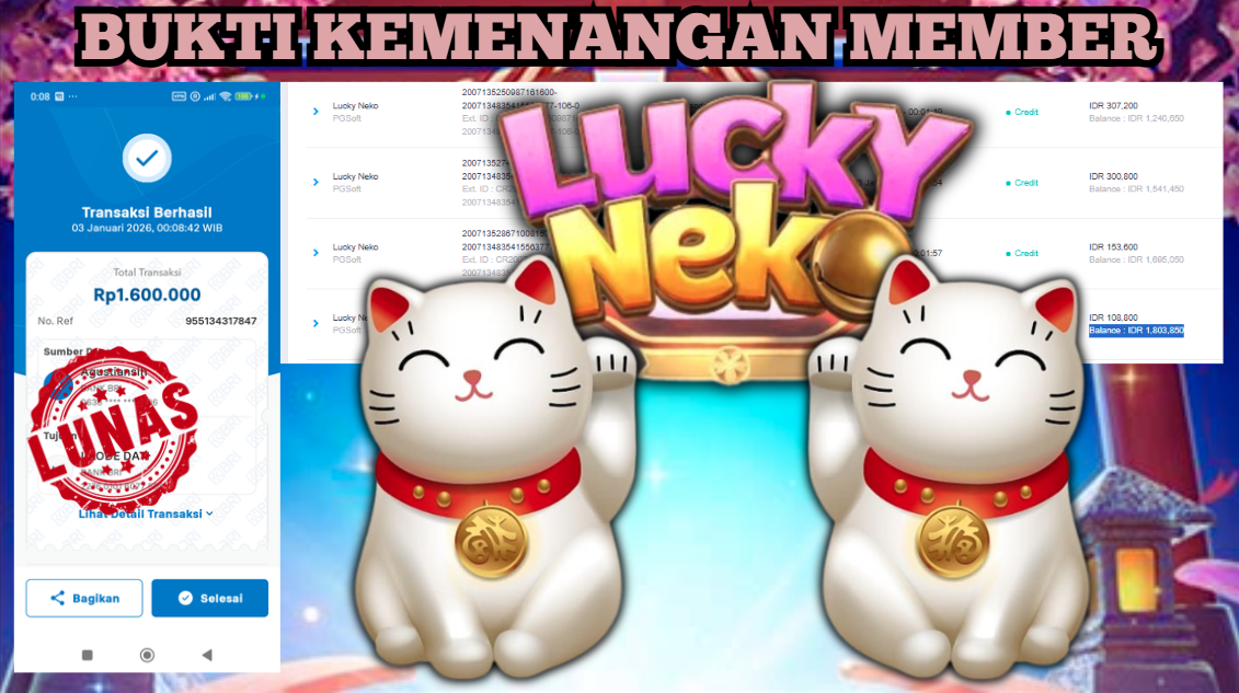 "Tanggal 03-01-2026 Selamat kepada member kami ID LAO*** memenangkan nominal 1.6 juta!"