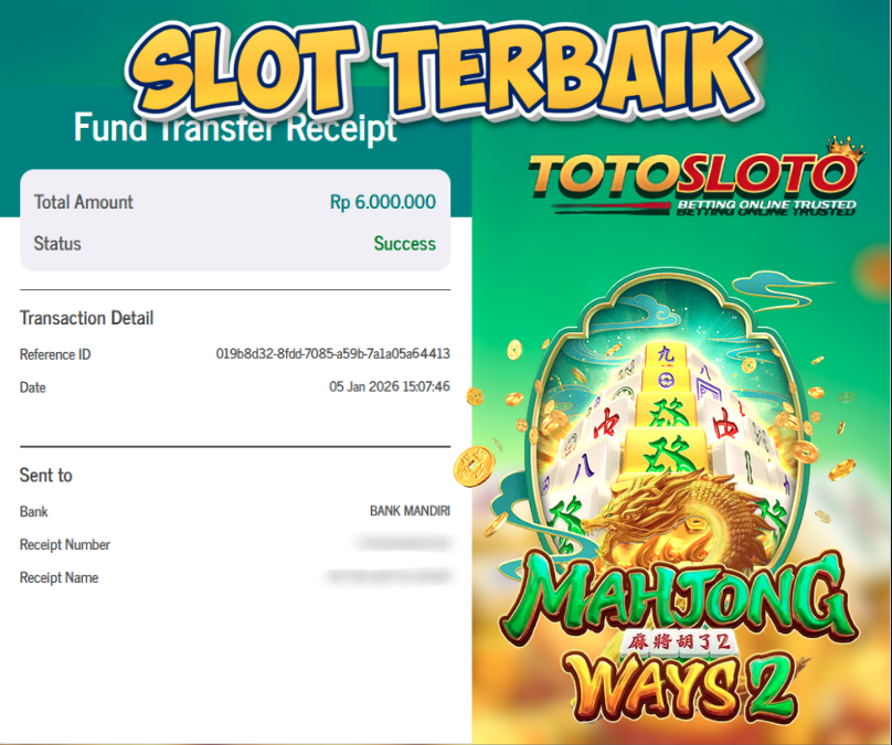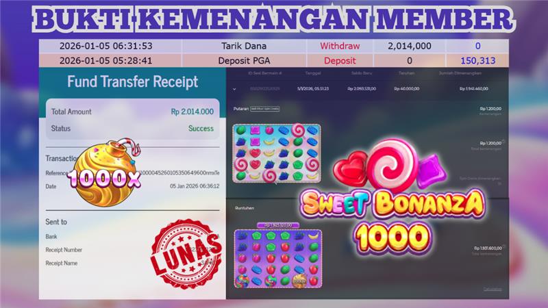 "Tanggal 05-01-2026 Selamat kepada member kami KANG*** memenangkan nominal 2 juta!"