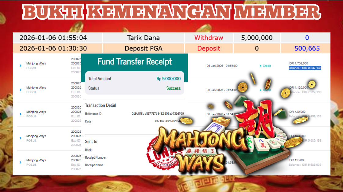 "Tanggal 05-01-2026 Selamat kepada member kami dangr*** memenangkan nominal 6 juta!"