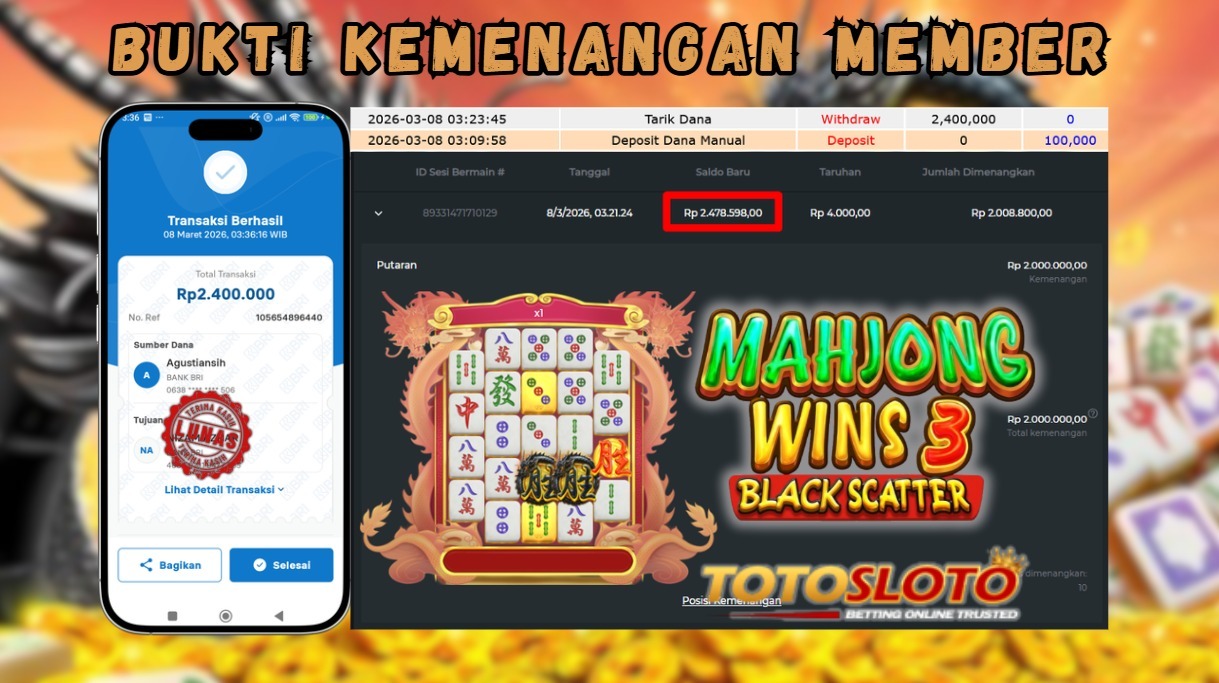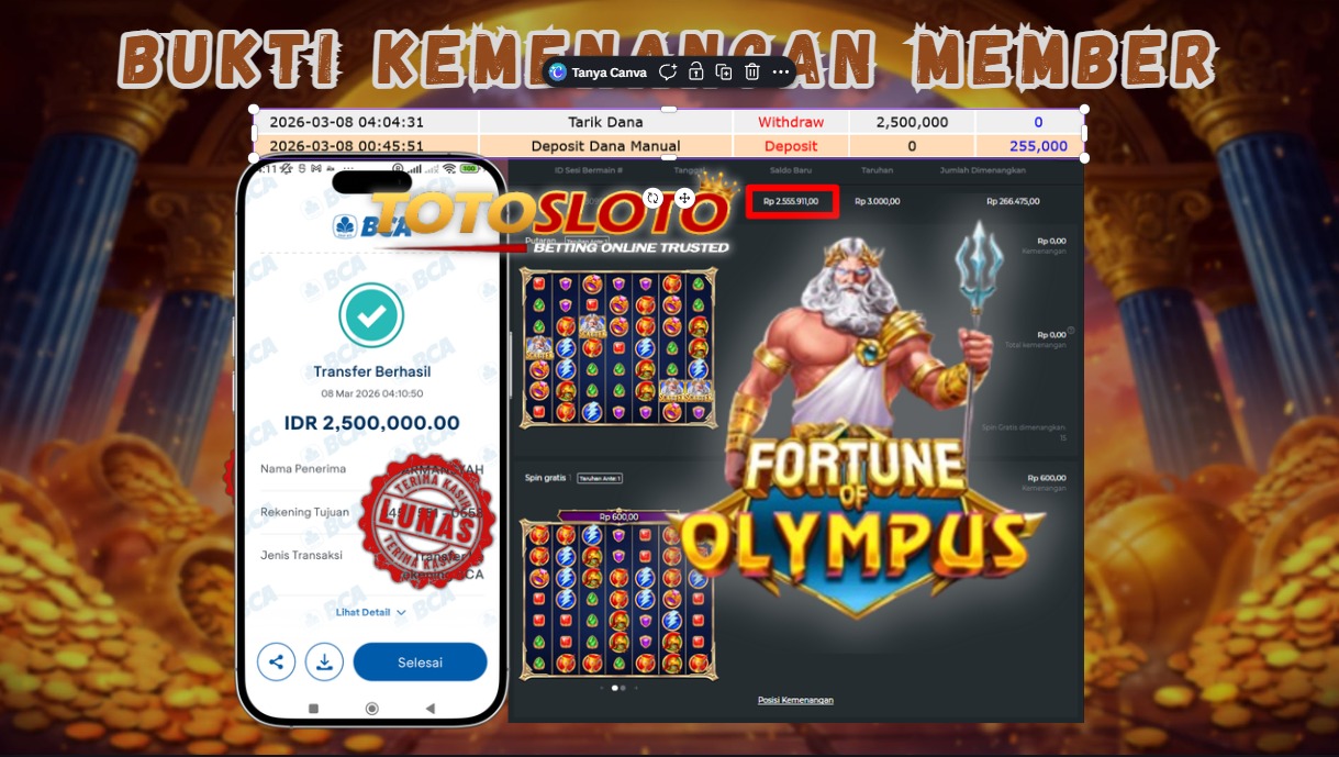 "Tanggal 08-03-2026 Selamat kepada member kami CAN*** memenangkan nominal 2.4 juta!"