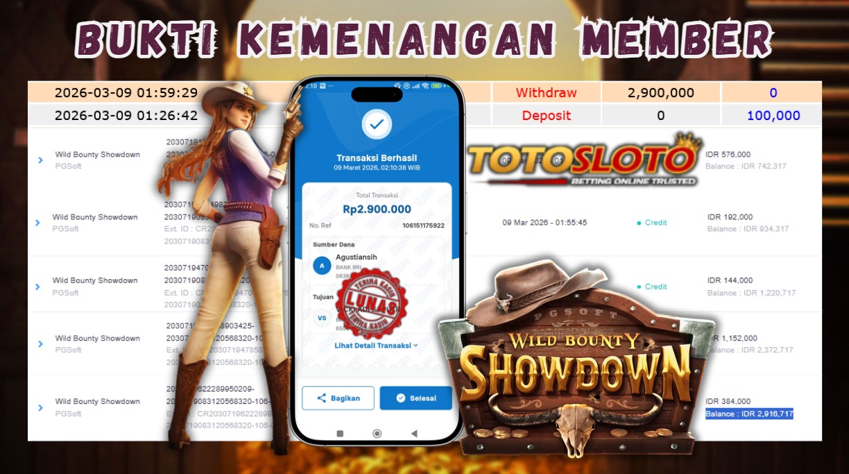 "Tanggal 09-03-2026 Selamat kepada member kami INDRI*** memenangkan nominal 2.9 juta!"