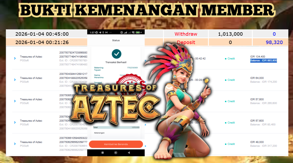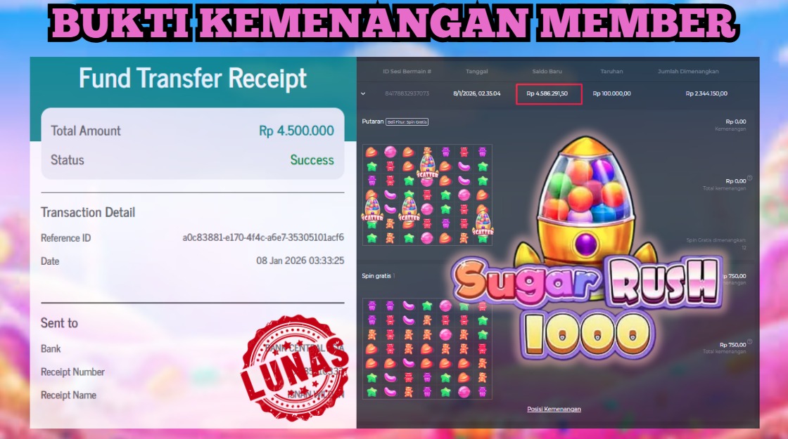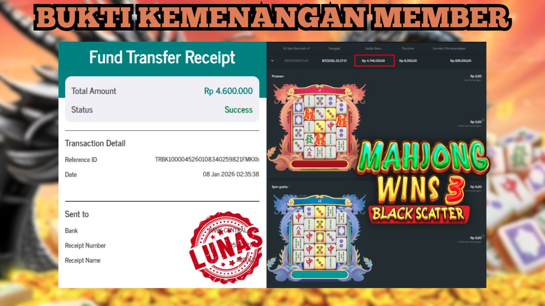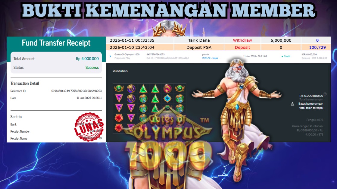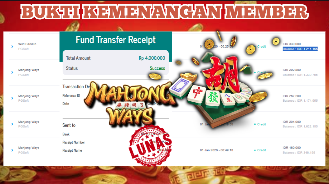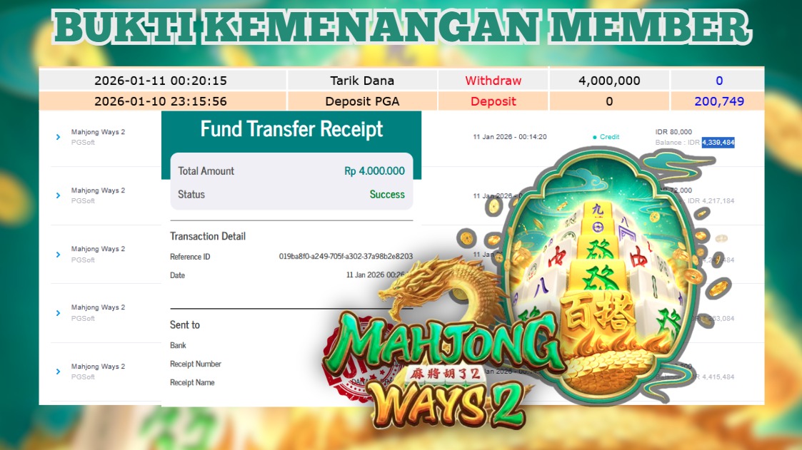 "Tanggal 01-01-2026 Selamat kepada member kami ID BEJ*** memenangkan nominal 4 juta!"