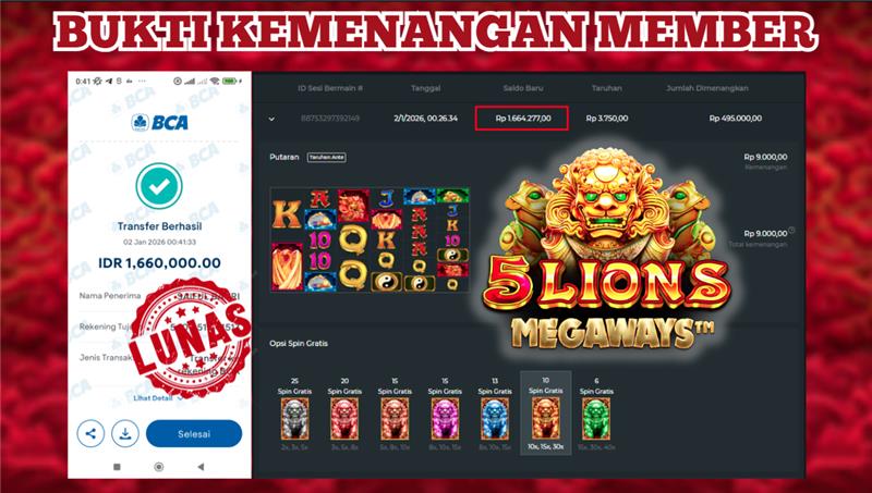 "Tanggal 01-01-2026 Selamat kepada member kami ID FERNANDO*** memenangkan nominal 5 juta!"