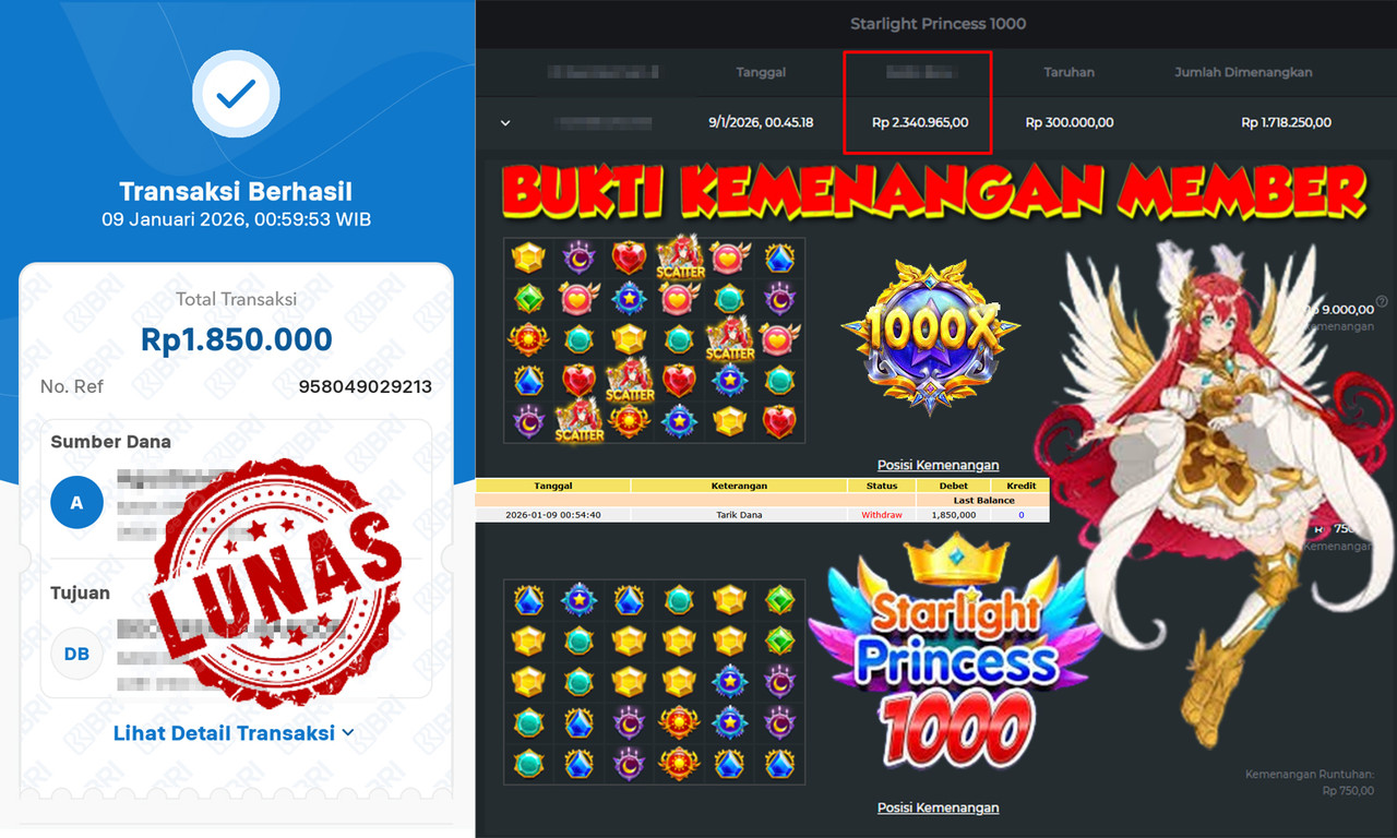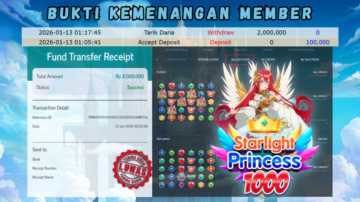 "Tanggal 13-01-2026 Selamat kepada member kami SAL*** memenangkan nominal 2 juta!"