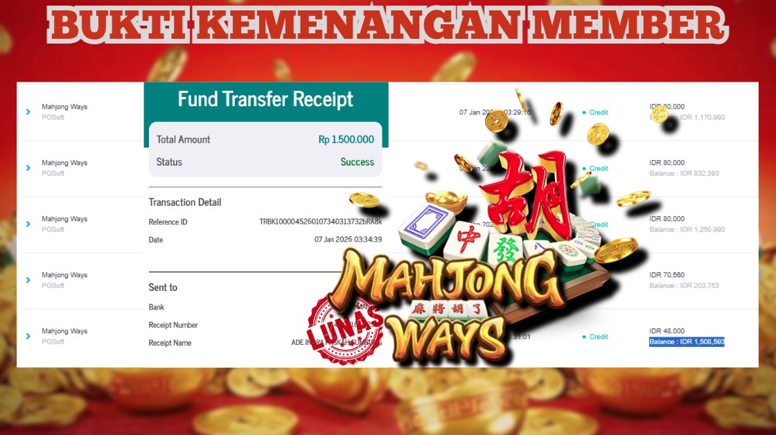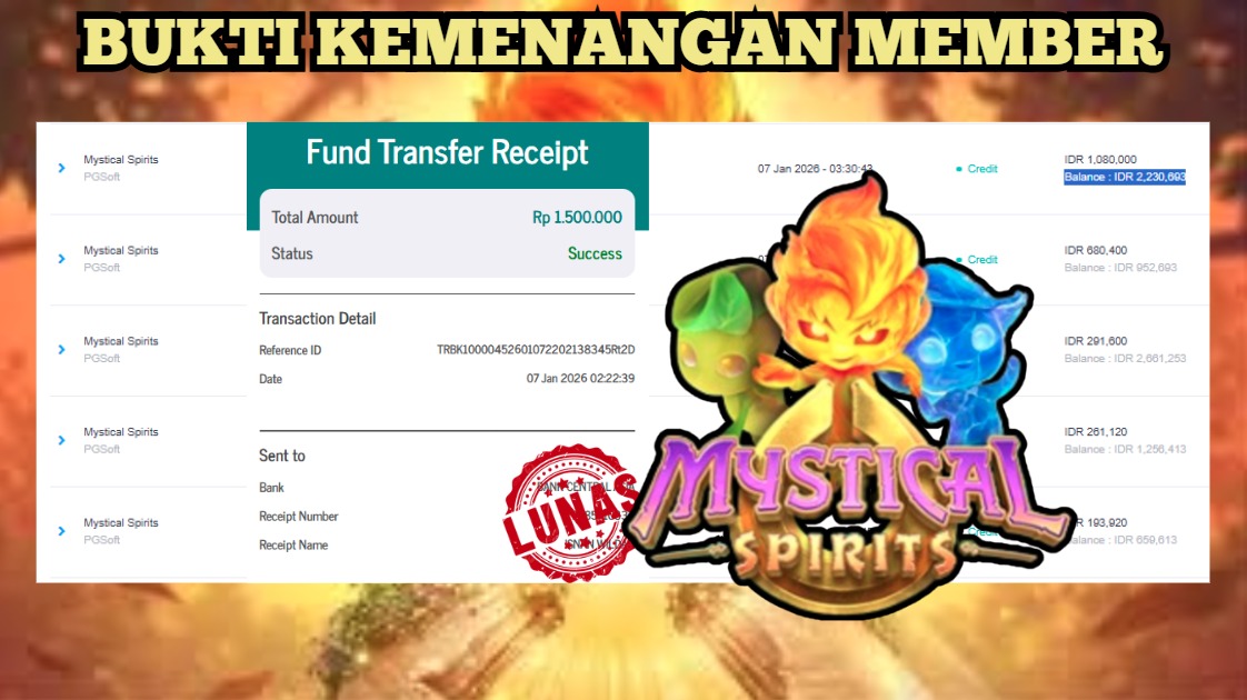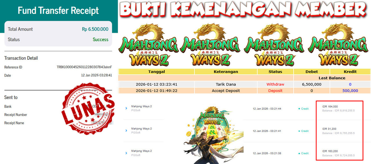 "Tanggal 16-01-2026 Selamat kepada member kami MONA*** memenangkan nominal 6.3 juta!"