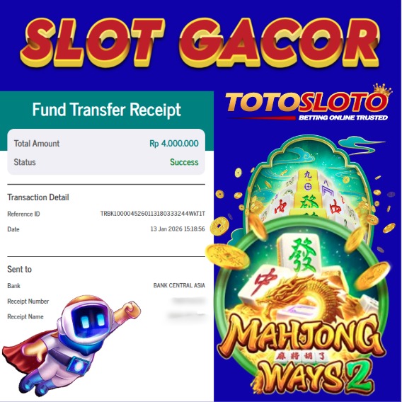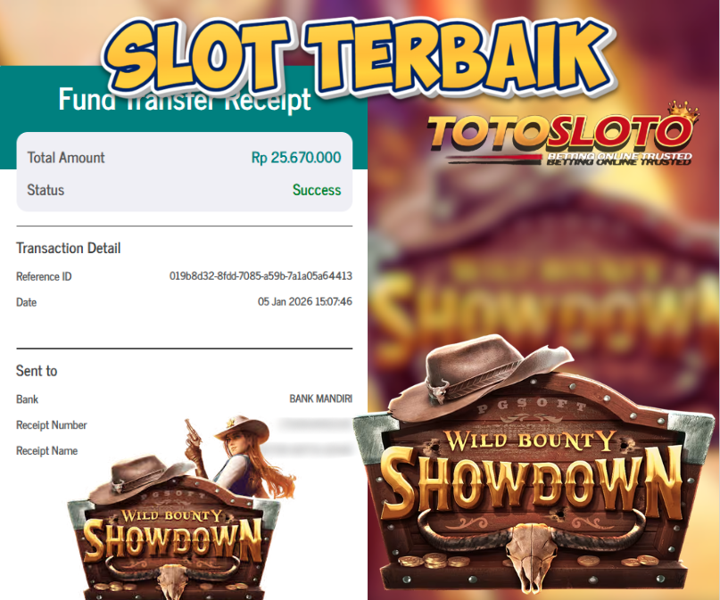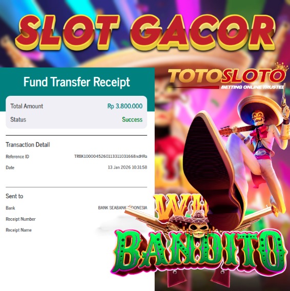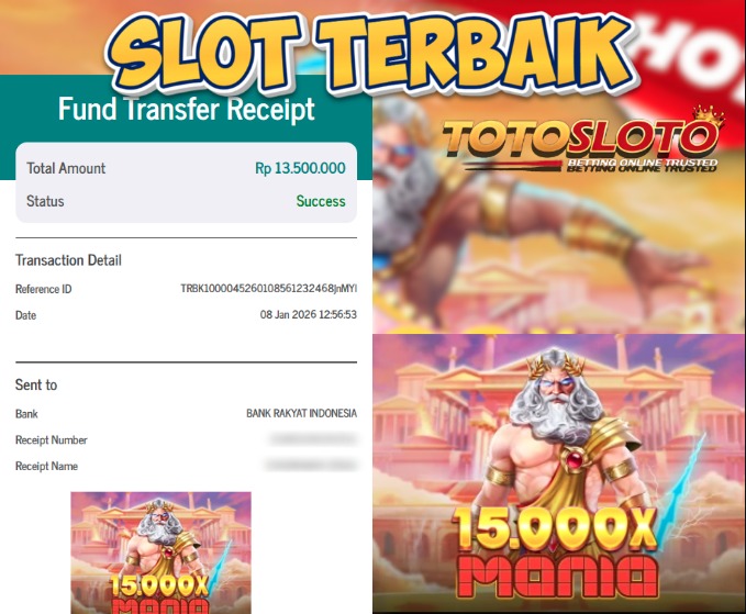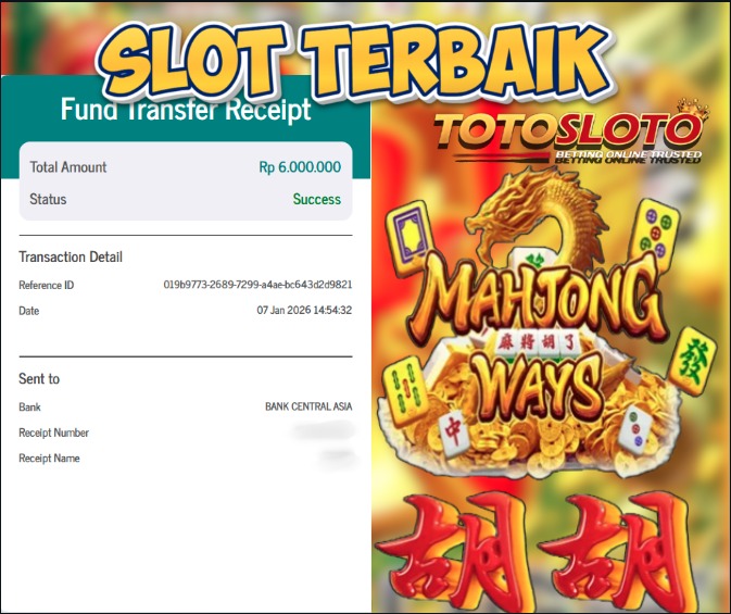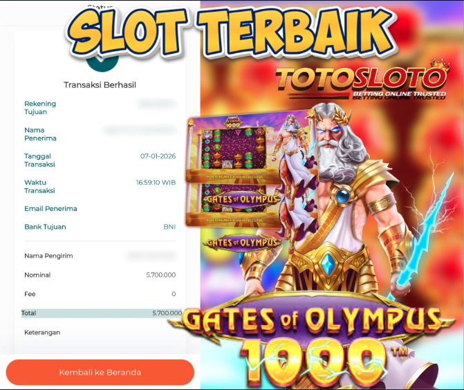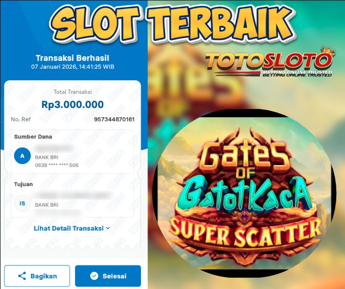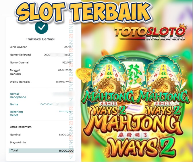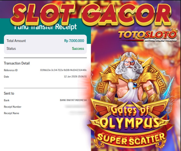 "Tanggal 12-01-2026 Selamat kepada member kami TOTOSLO*** memenangkan nominal 7 juta!"