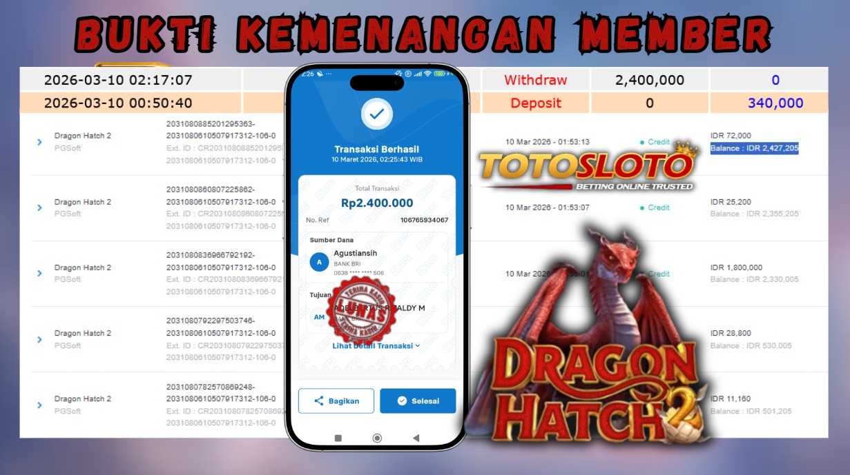 "Tanggal 01-03-2026 Selamat kepada member kami HEN*** memenangkan nominal 2.4 juta!"