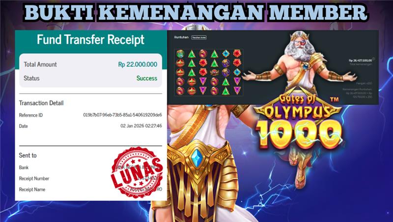 "Tanggal 02-01-2026 Selamat kepada member kami ID REG*** memenangkan nominal 1.6 juta!"