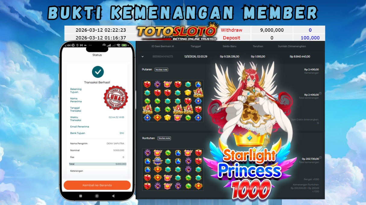 "Tanggal 12-03-2026 Selamat kepada member kami CRIS*** memenangkan nominal 9 juta!"