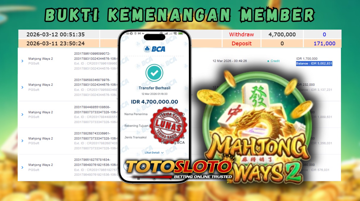 "Tanggal 12-03-2026 Selamat kepada member kami IVAN*** memenangkan nominal 4.7 juta!"