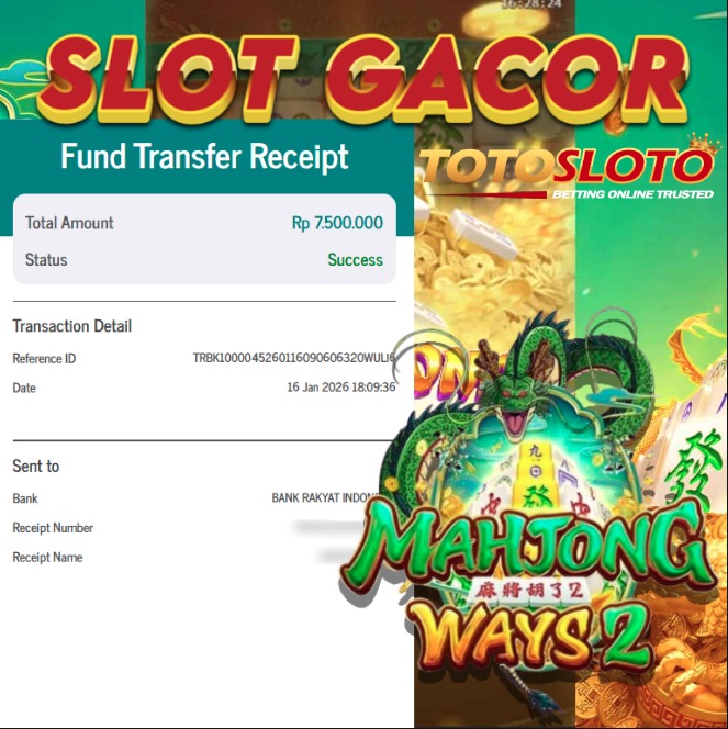 "Tanggal 16-01-2026 Selamat kepada member kami TOTO*** memenangkan nominal 7.1 juta!"