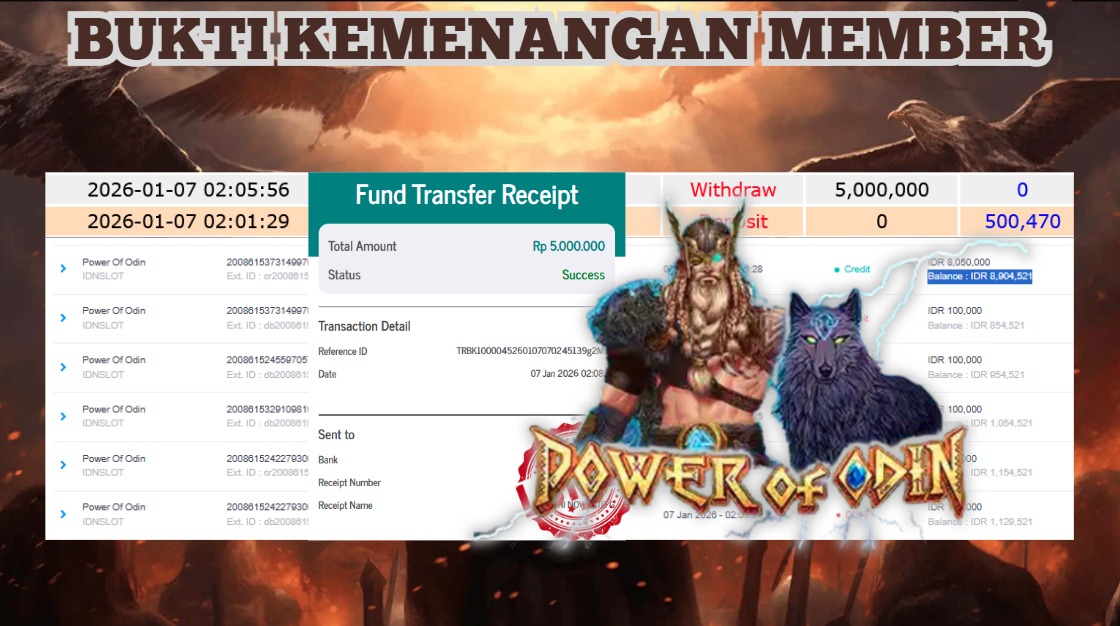 "Tanggal 06-01-2026 Selamat kepada member kami UDA*** memenangkan nominal 5 juta!"