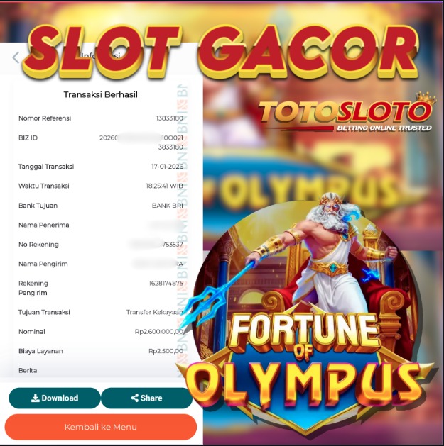 "Tanggal 17-01-2026 Selamat kepada member kami gre*** memenangkan nominal 2.6 juta!"