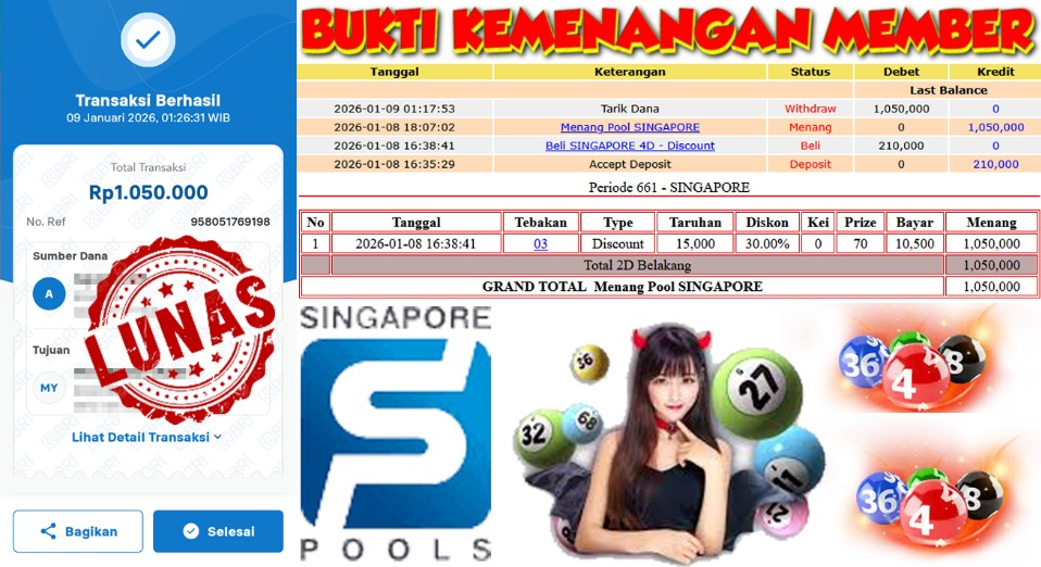 "Tanggal 06-01-2026 Selamat kepada member kami WAHYUP*** memenangkan nominal 3 juta!"