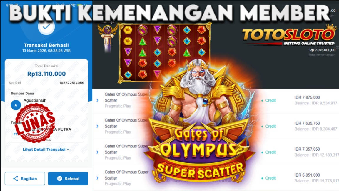 "Tanggal 13-03-2026 Selamat kepada member kami kalem*** memenangkan nominal 13 juta!"