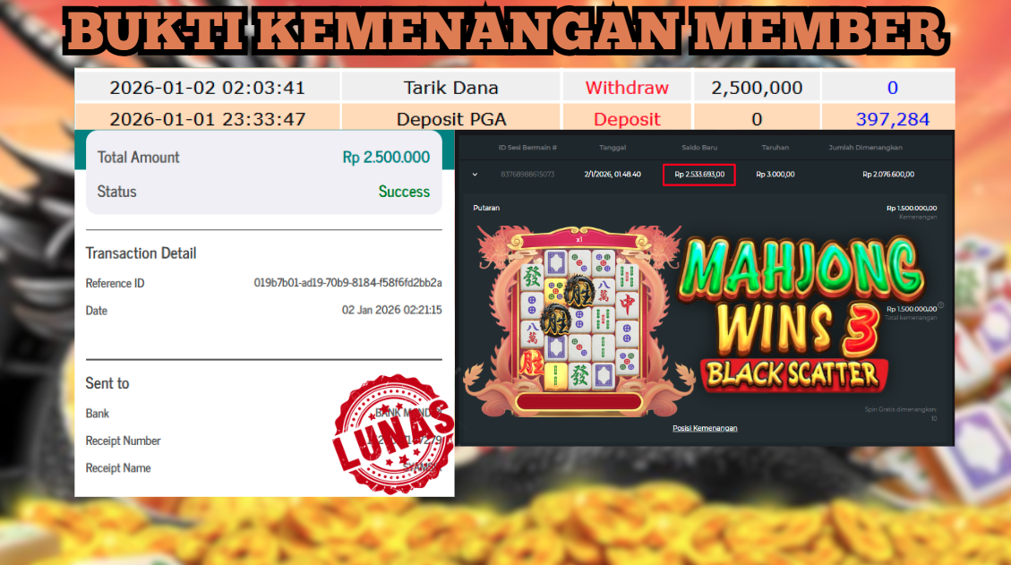 "Tanggal 02-01-2026 Selamat kepada member kami ID SYAM*** memenangkan nominal 2.5 juta!"