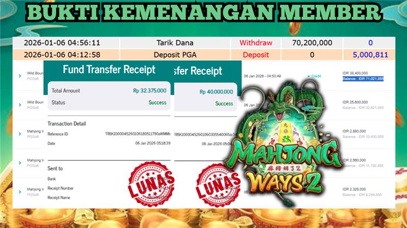 "Tanggal 06-01-2026 Selamat kepada member kami DIAH*** memenangkan nominal 72 juta!"