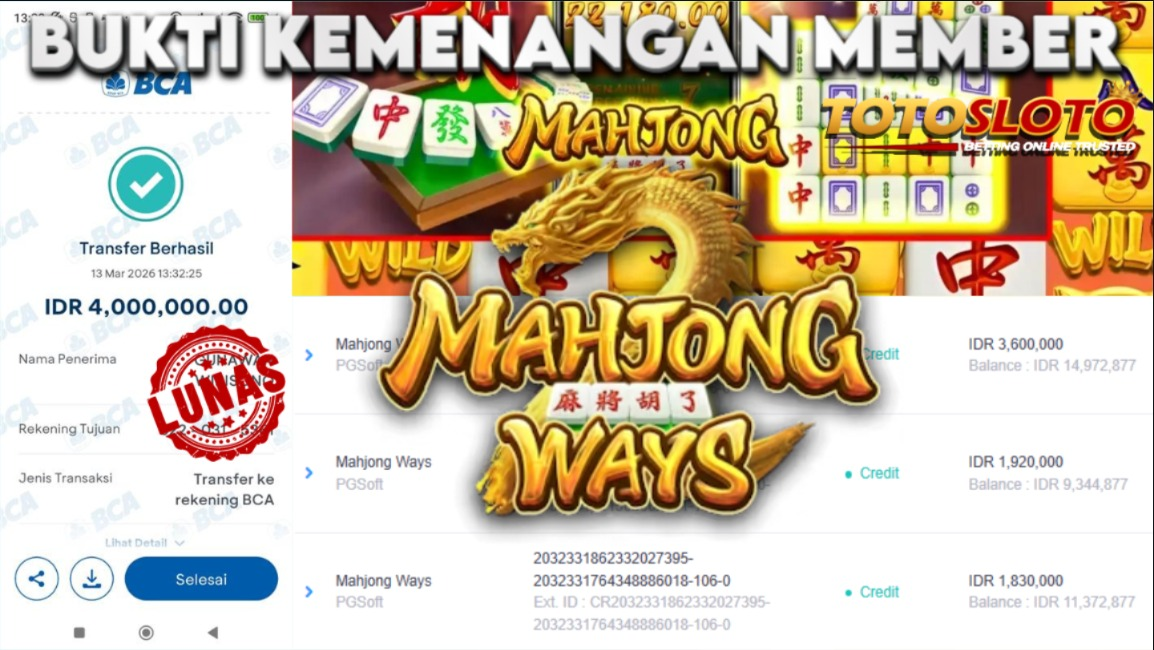 "Tanggal 02-03-2026 Selamat kepada member kami dofar*** memenangkan nominal 13.4 juta!"
