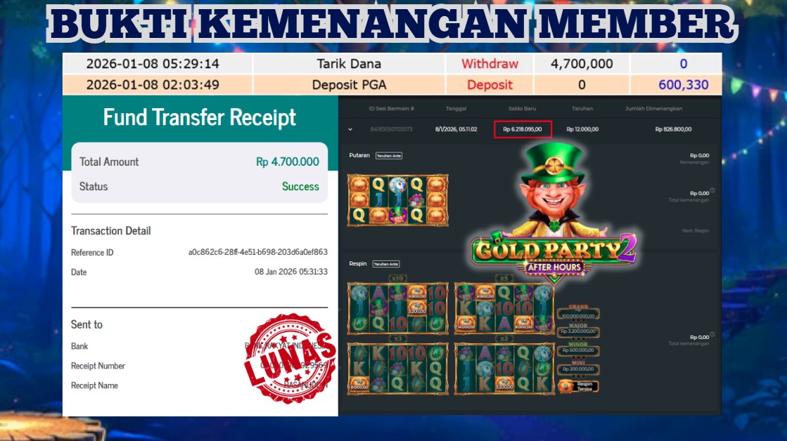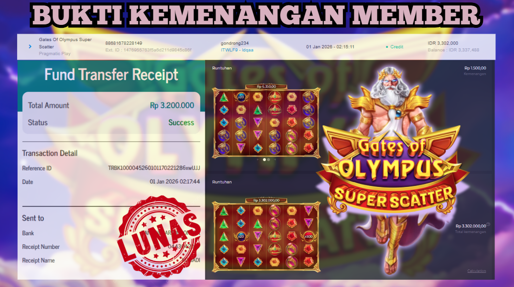 "Tanggal 01-01-2026 Selamat kepada member kami ID GOND*** memenangkan nominal 3.2 juta!"