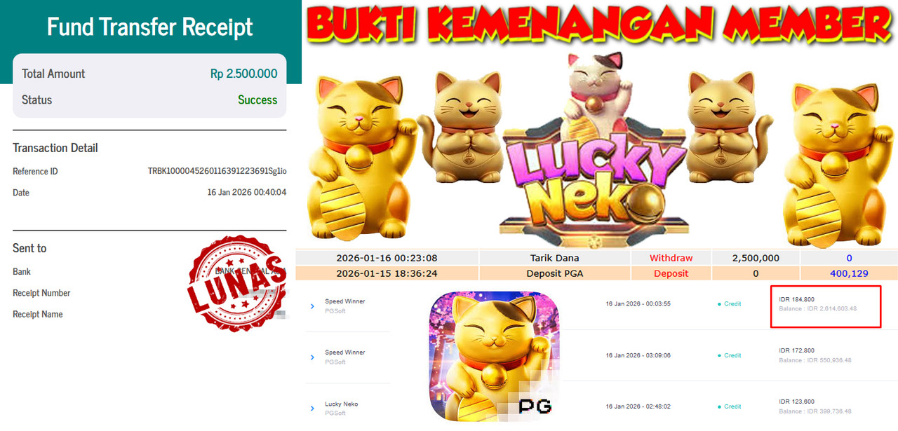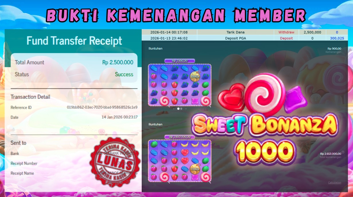 "Tanggal 14-01-2026 Selamat kepada member kami BEN*** memenangkan nominal 2.5 juta!"